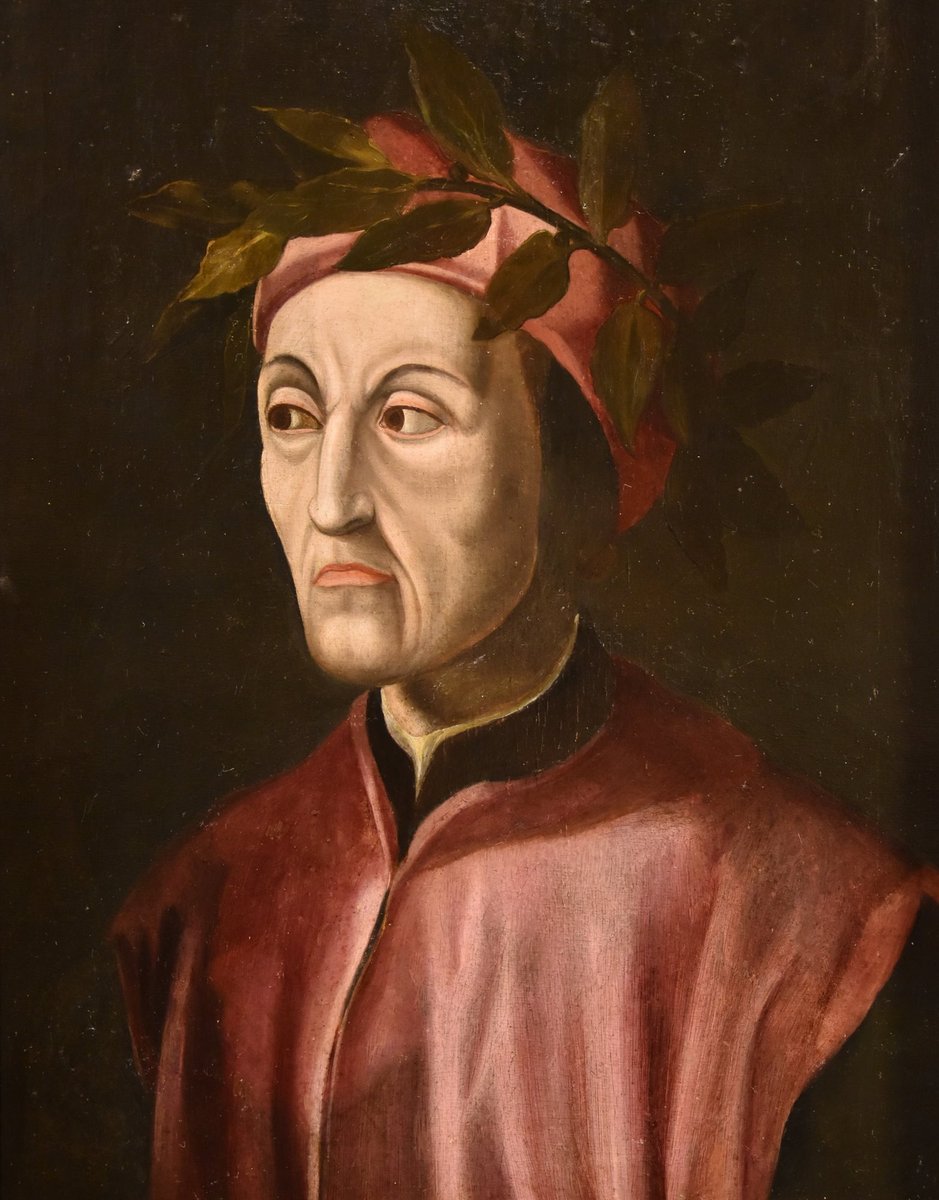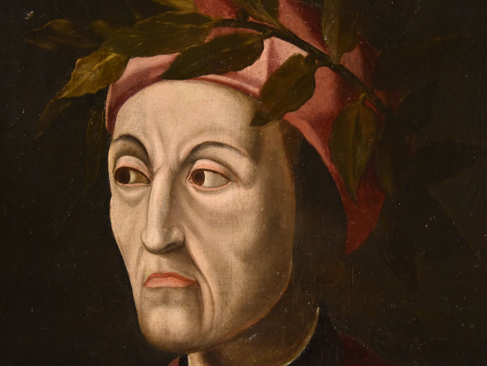 We present this exquisite painting, one of the rare portraits of Dante Alighieri (Florence 1265 – Ravenna 1321) of excellent execution. It is included in the series of posthumous portraits that the greatest Renaissance authors dedicated to the Supreme Poet, attesting to his acclaimed and immortal fame.