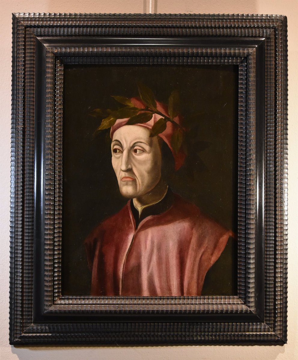 In our beautiful work, for example, Dante is depicted half-length, his face and gaze turned to the left, his expression serious but intense, and facial features that immediately evoke the portraiture of early Florentine Mannerism.