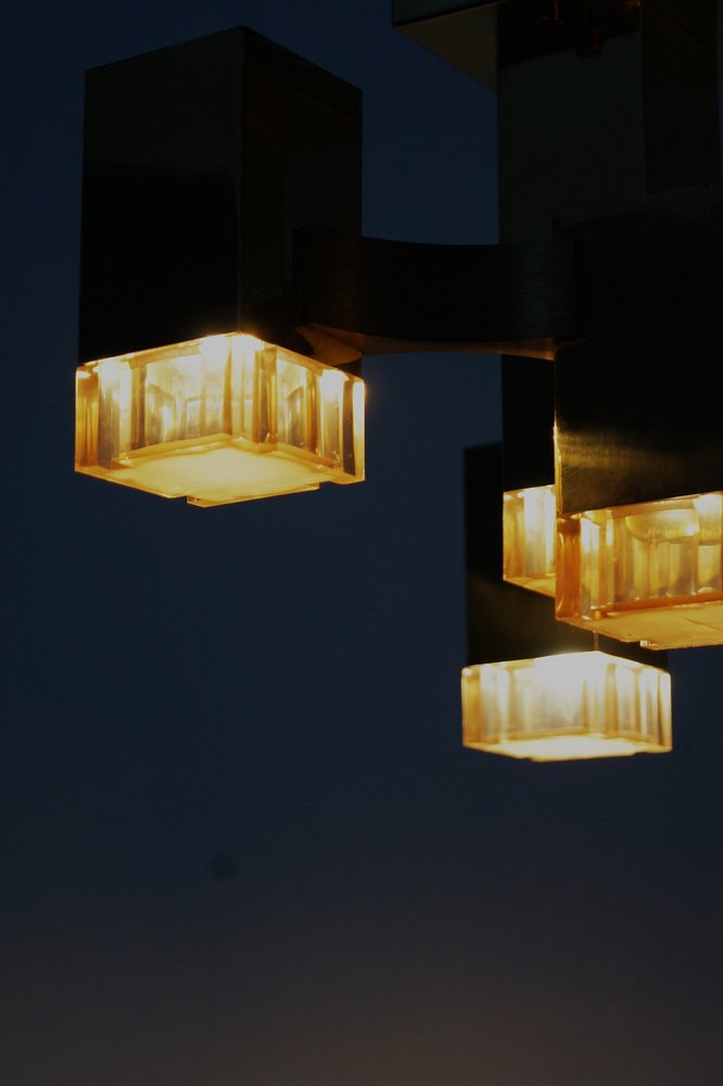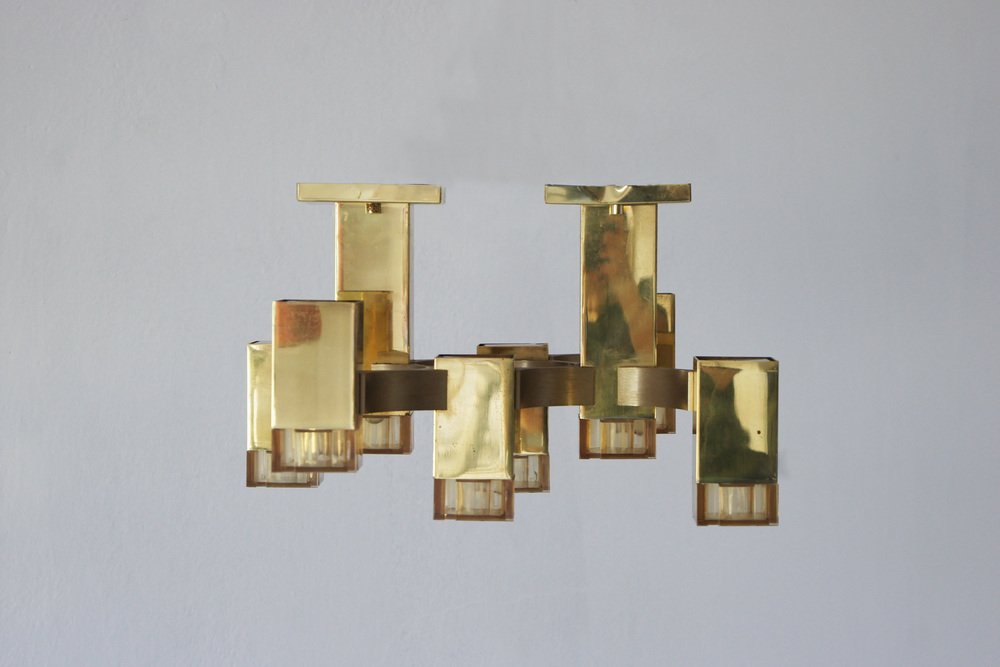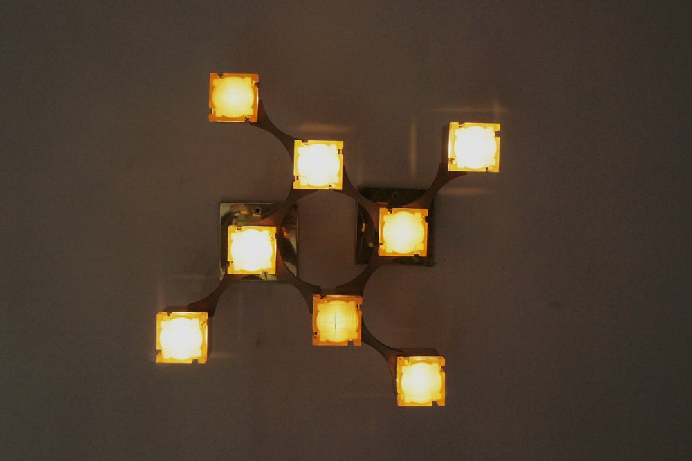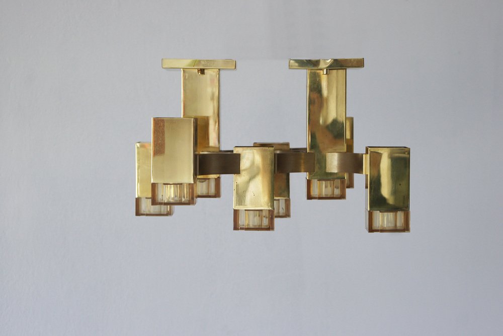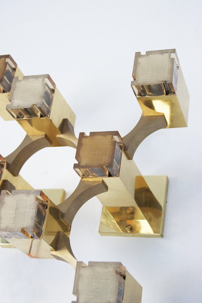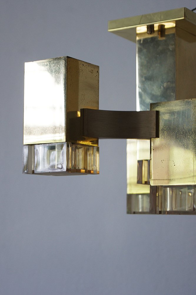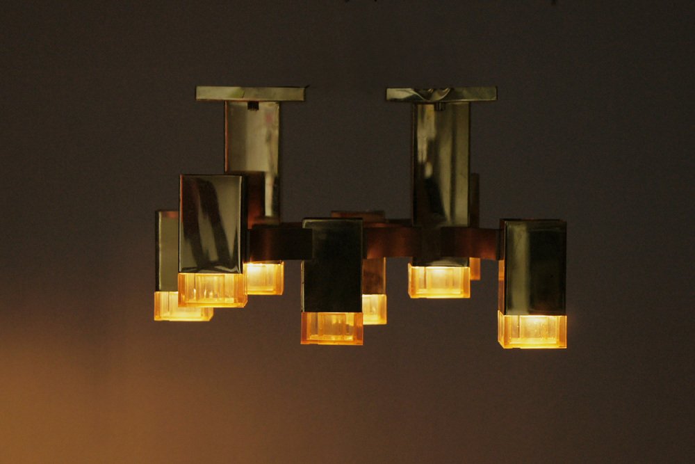 Cubic Gold Lamp Design by Gaetano Sciolari for Sciolari Illuminazione, Italy, 1970s
