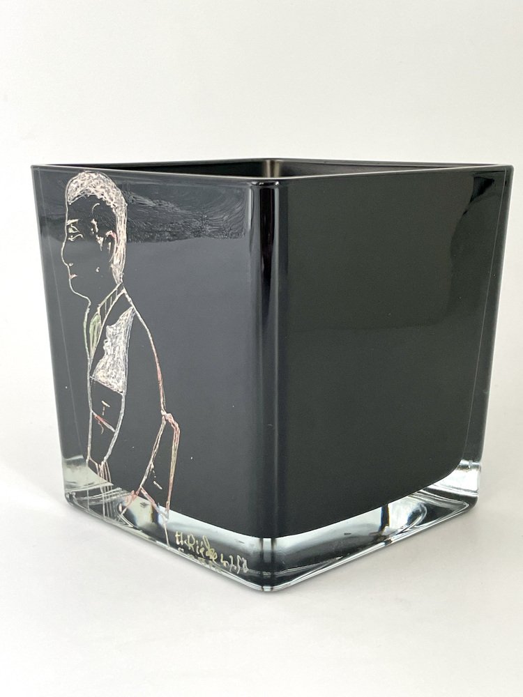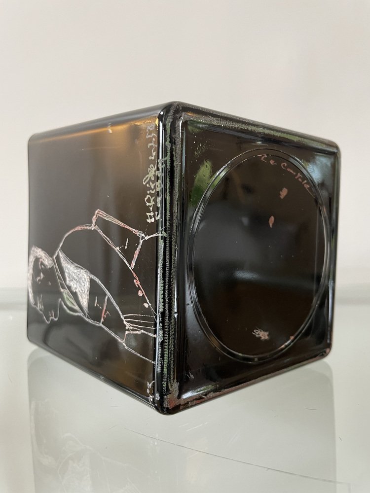 Cubic Vase Featuring Gabin by Anatole Riecke for La Pouole, 1958