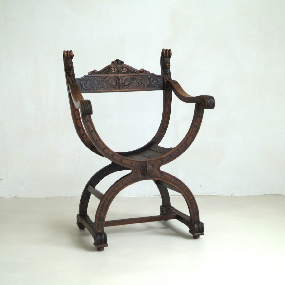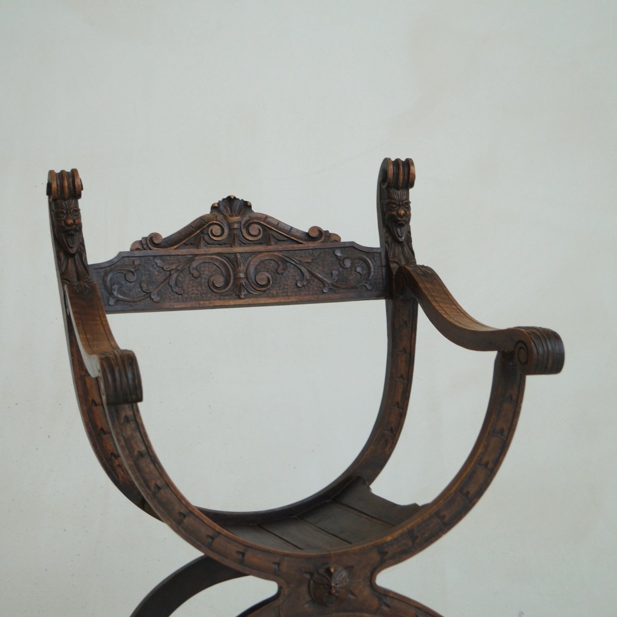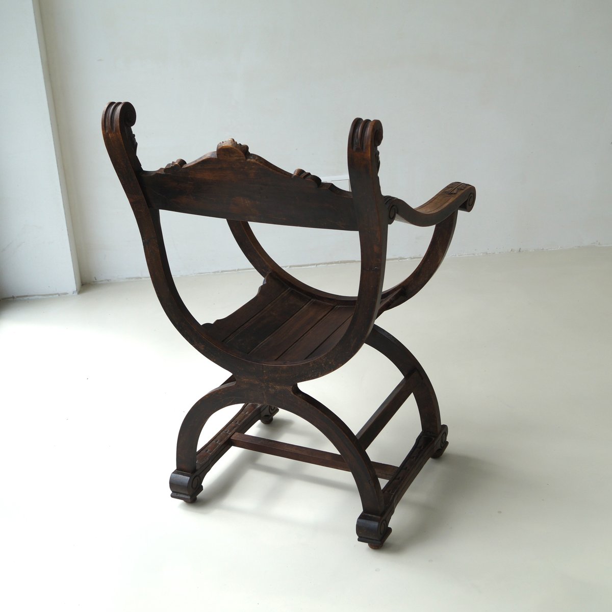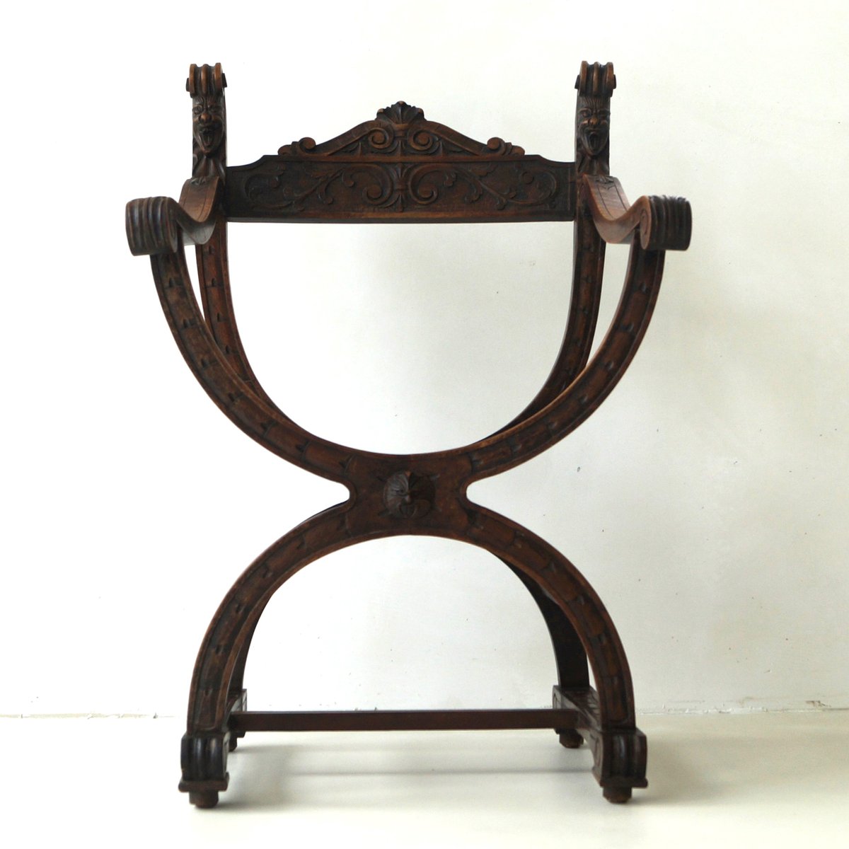 Curule or Dagobert Armchair in Walnut, Italy, 1910s
