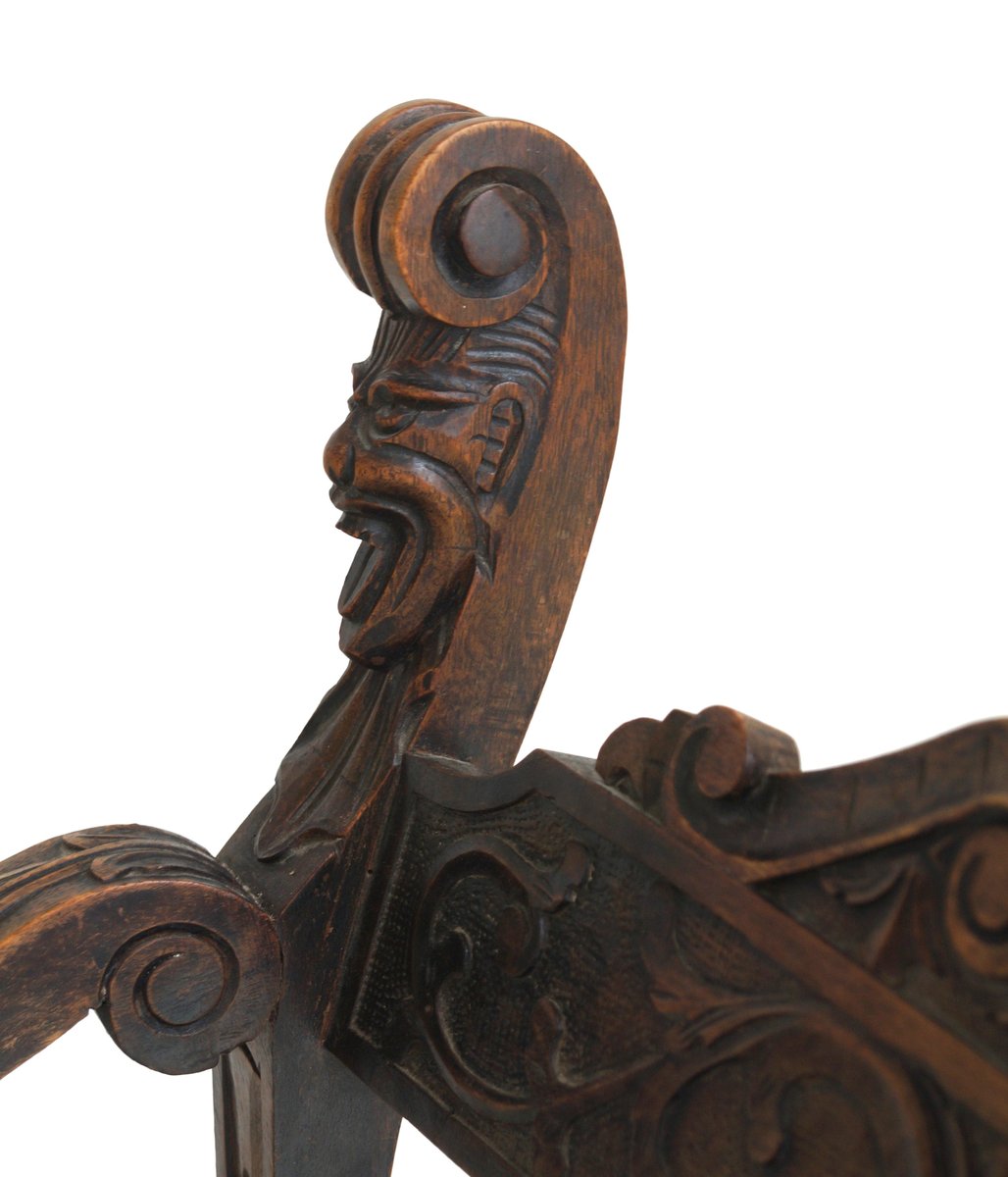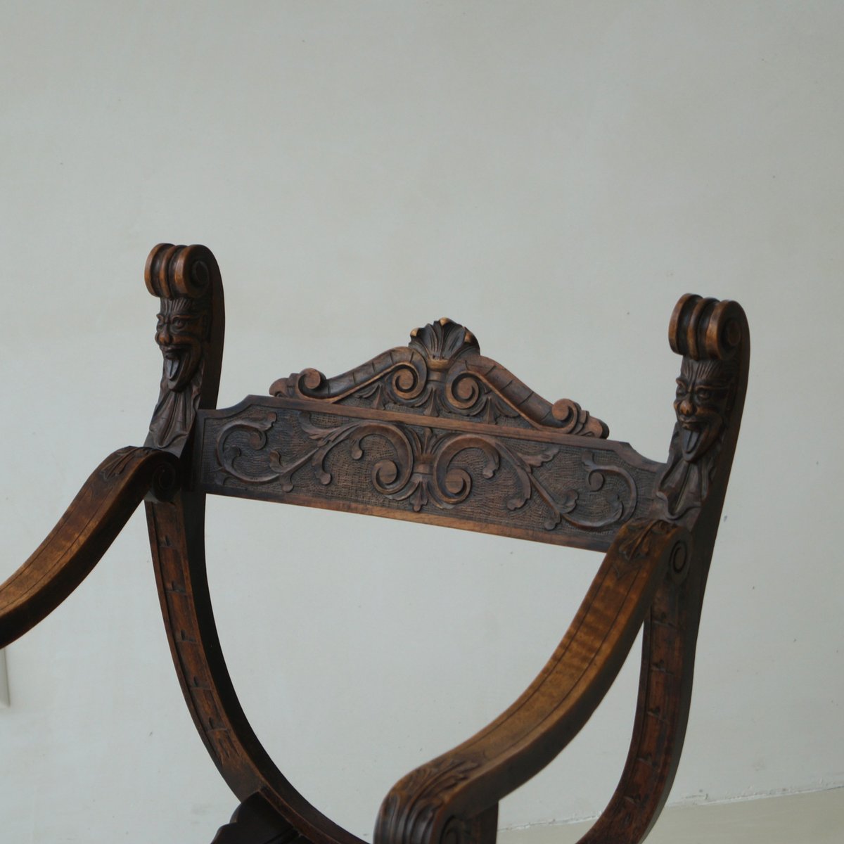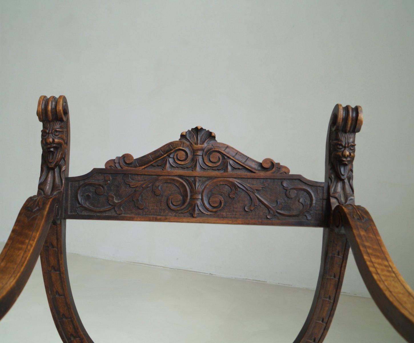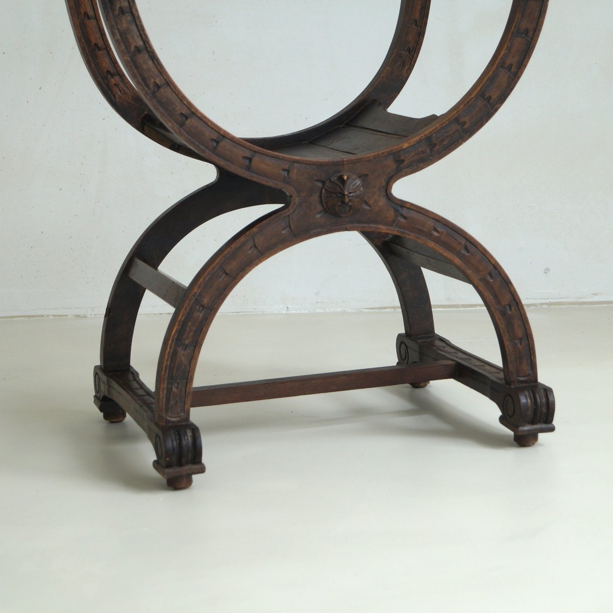 Curule or Dagobert Armchair in Walnut, Italy, 1910s