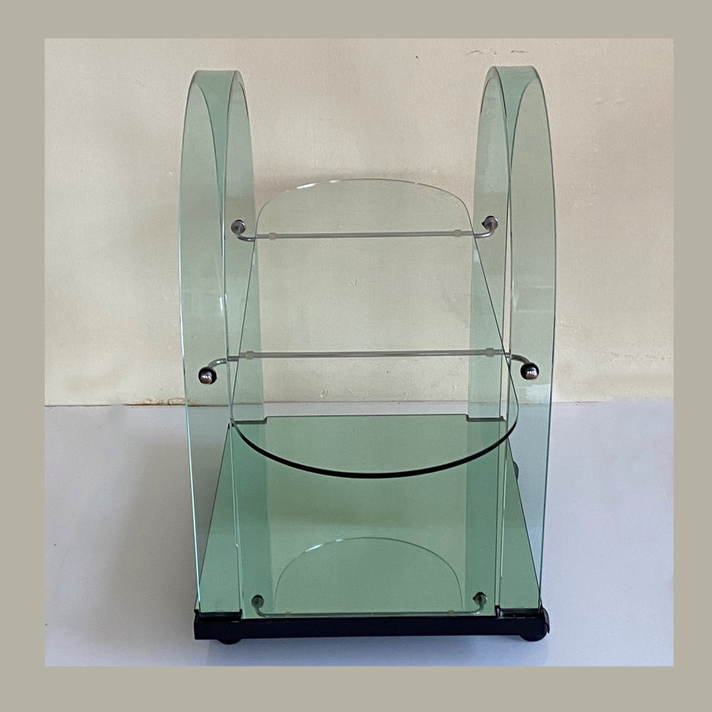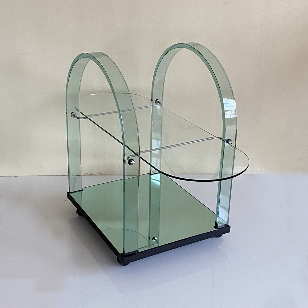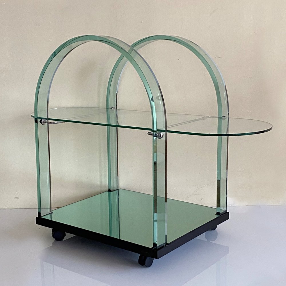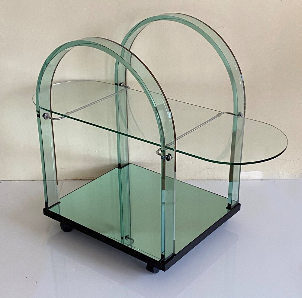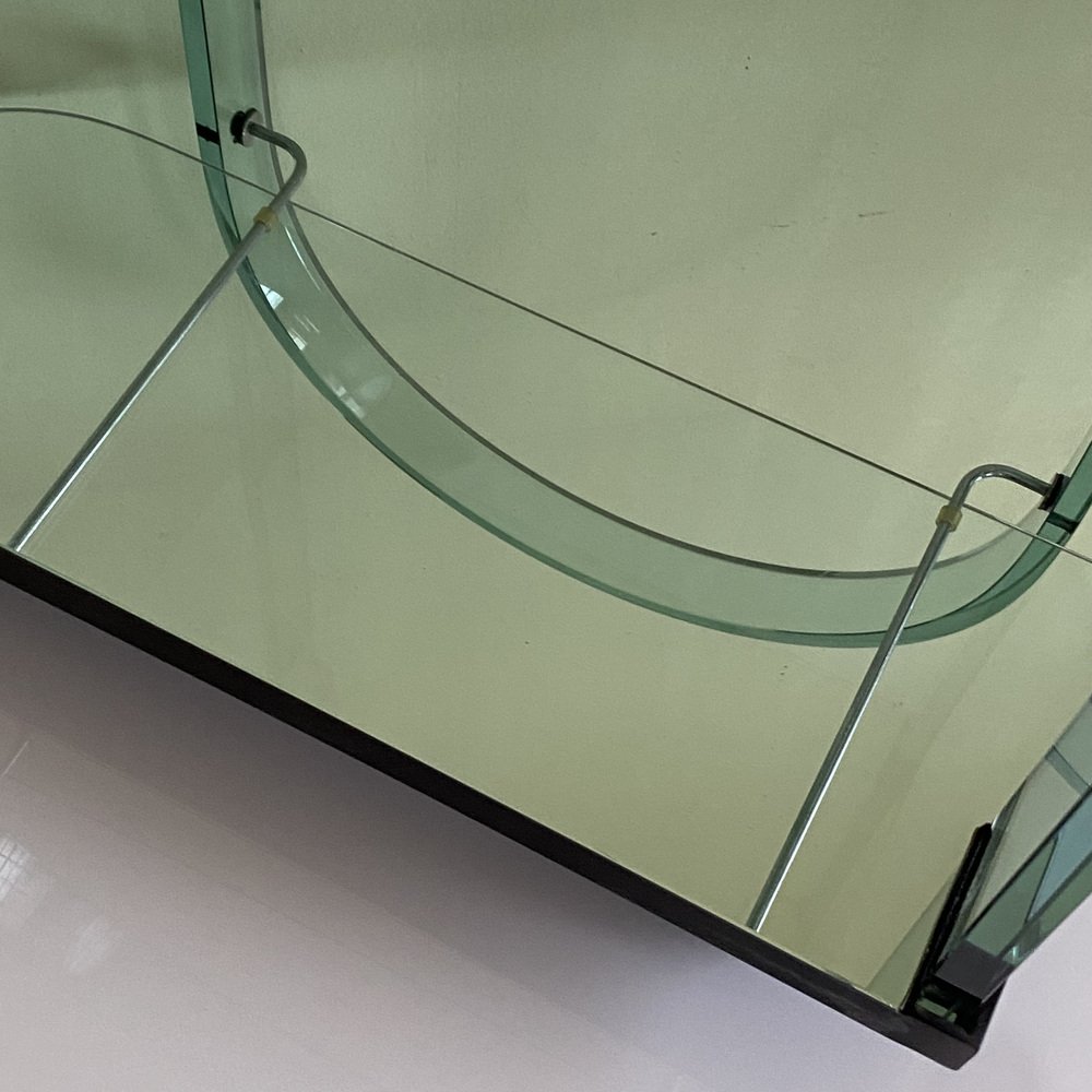 Curved Green Glass Bar Cart by Fiam, Italy, 1980s