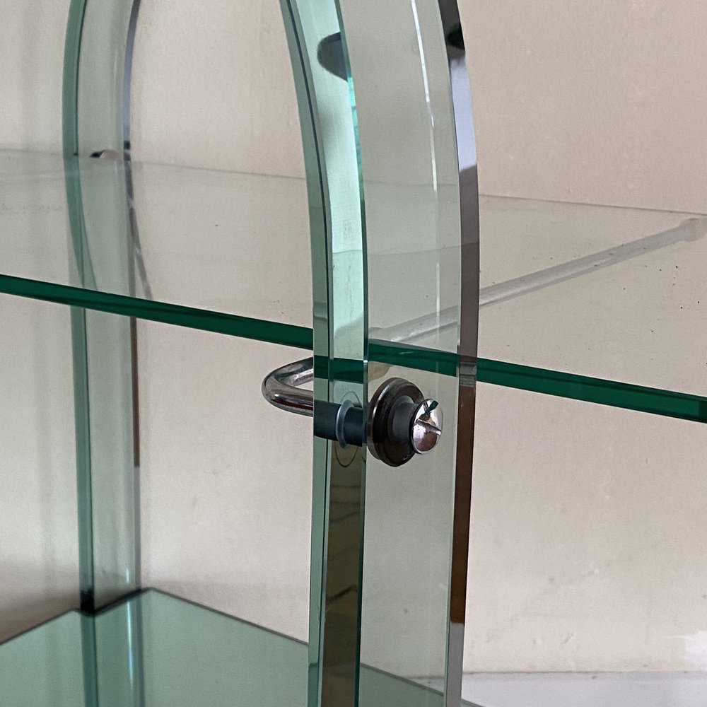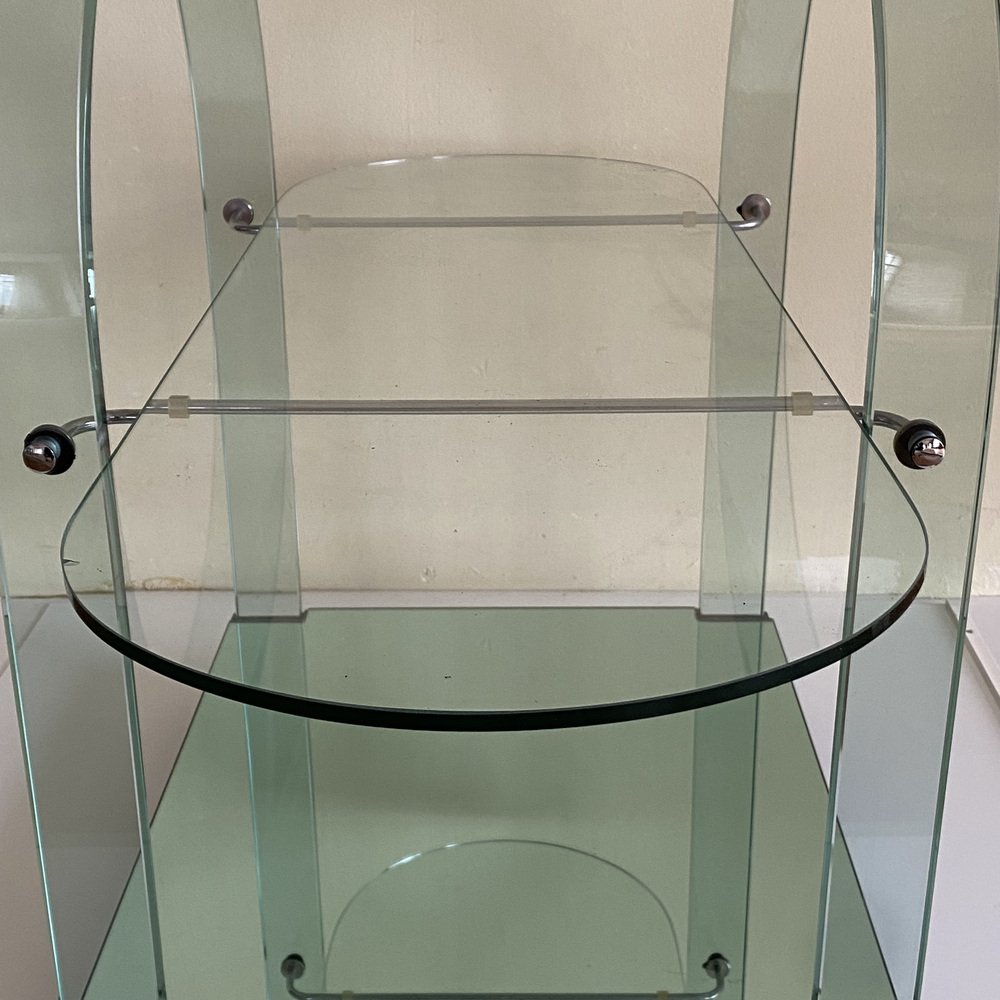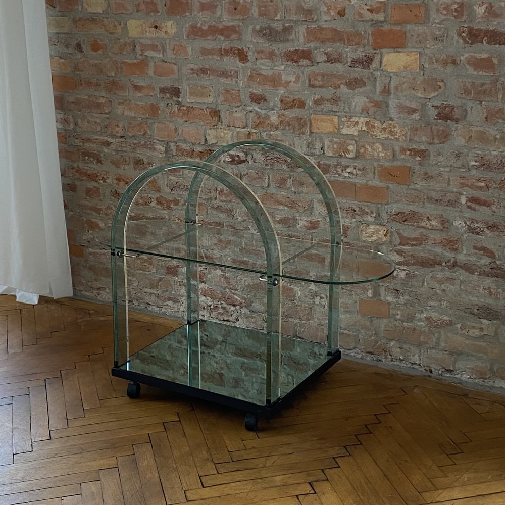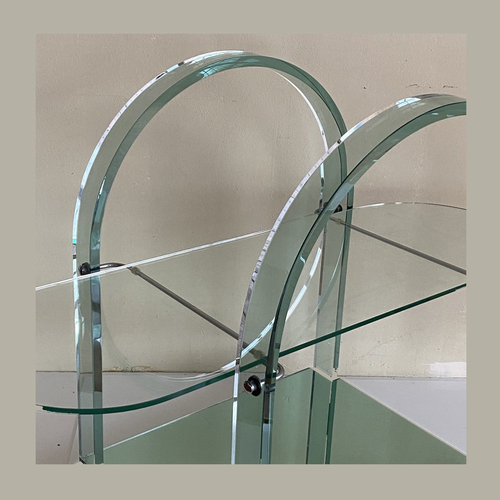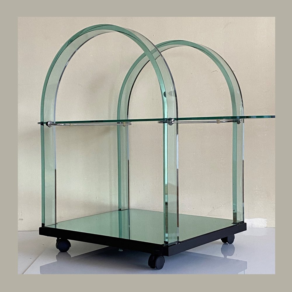 Curved Green Glass Bar Cart by Fiam, Italy, 1980s