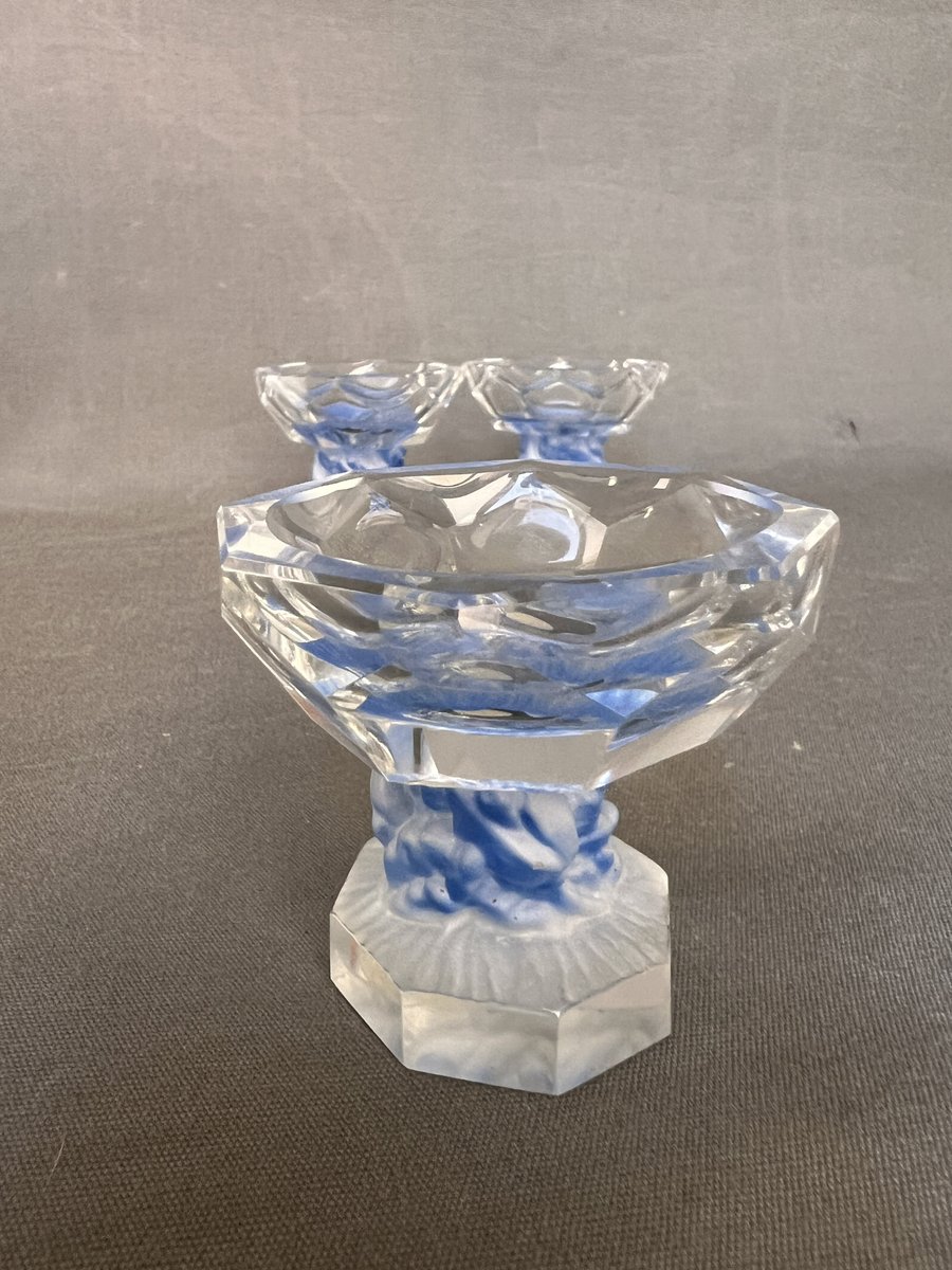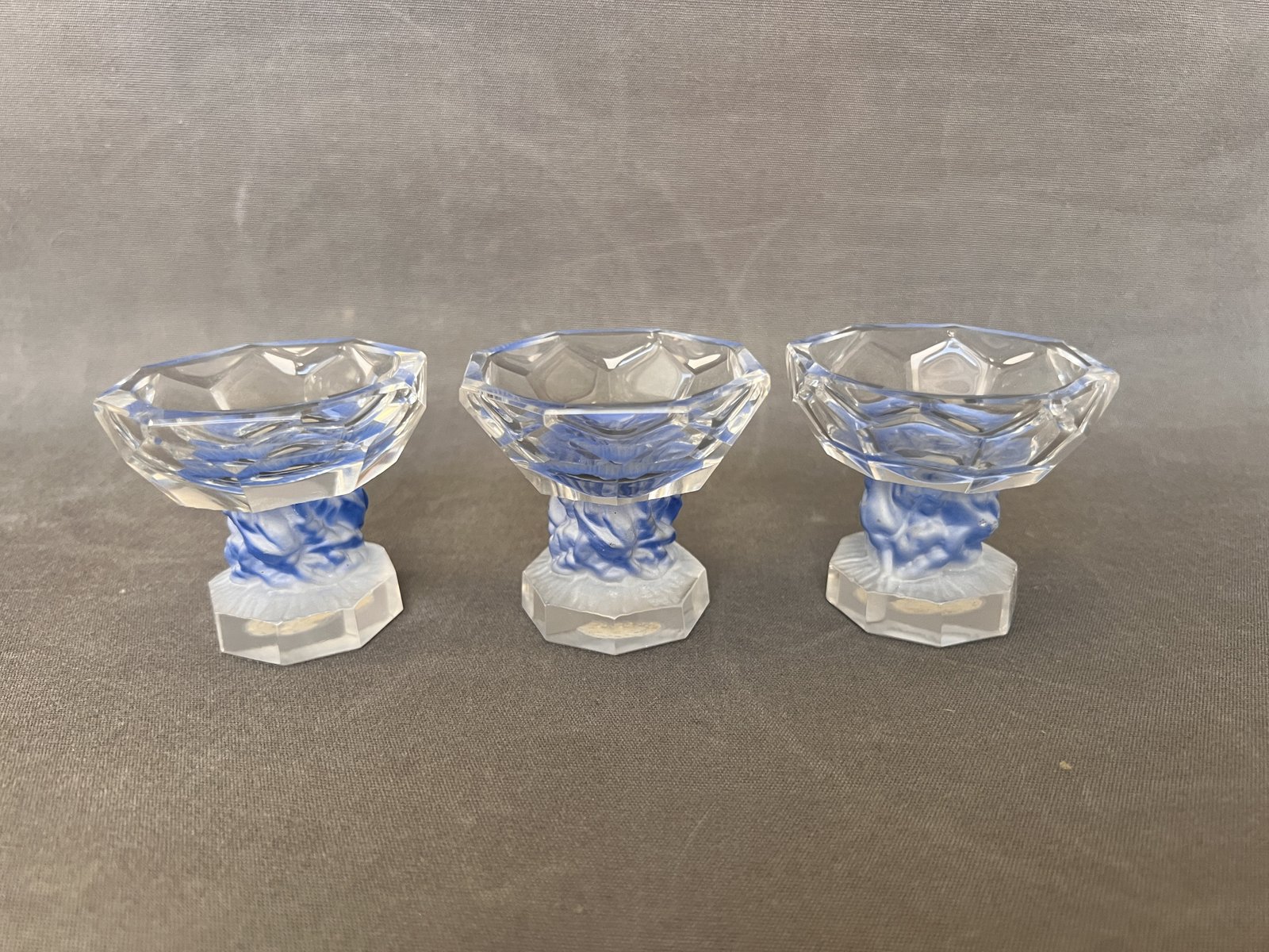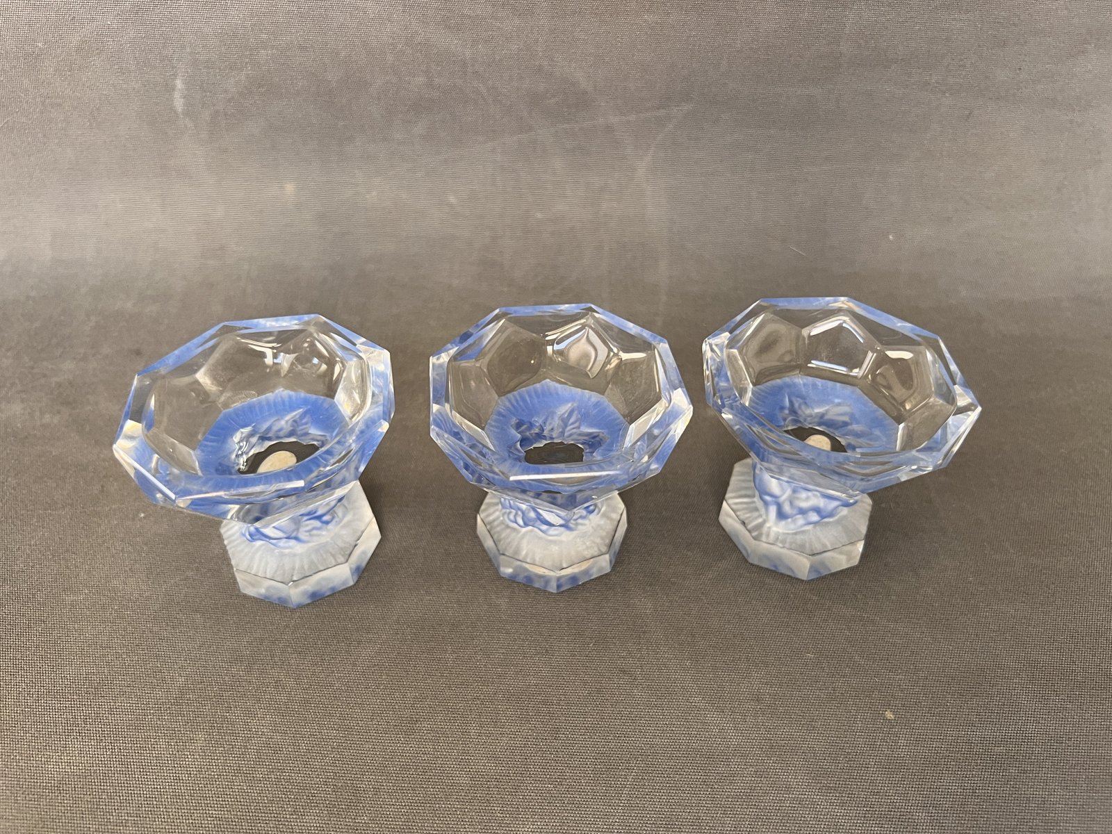 Czech Art Deco Bohemian Frosted Blue Crystal Glasses by Heinrich Hoffmann, 1930s, Set of 3