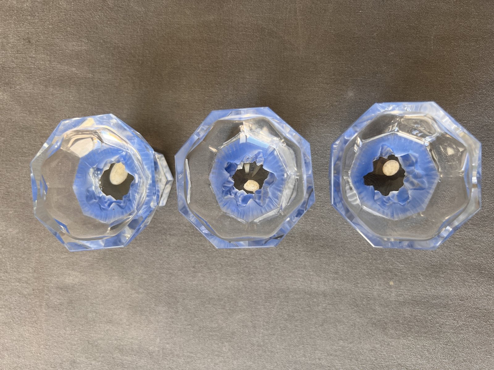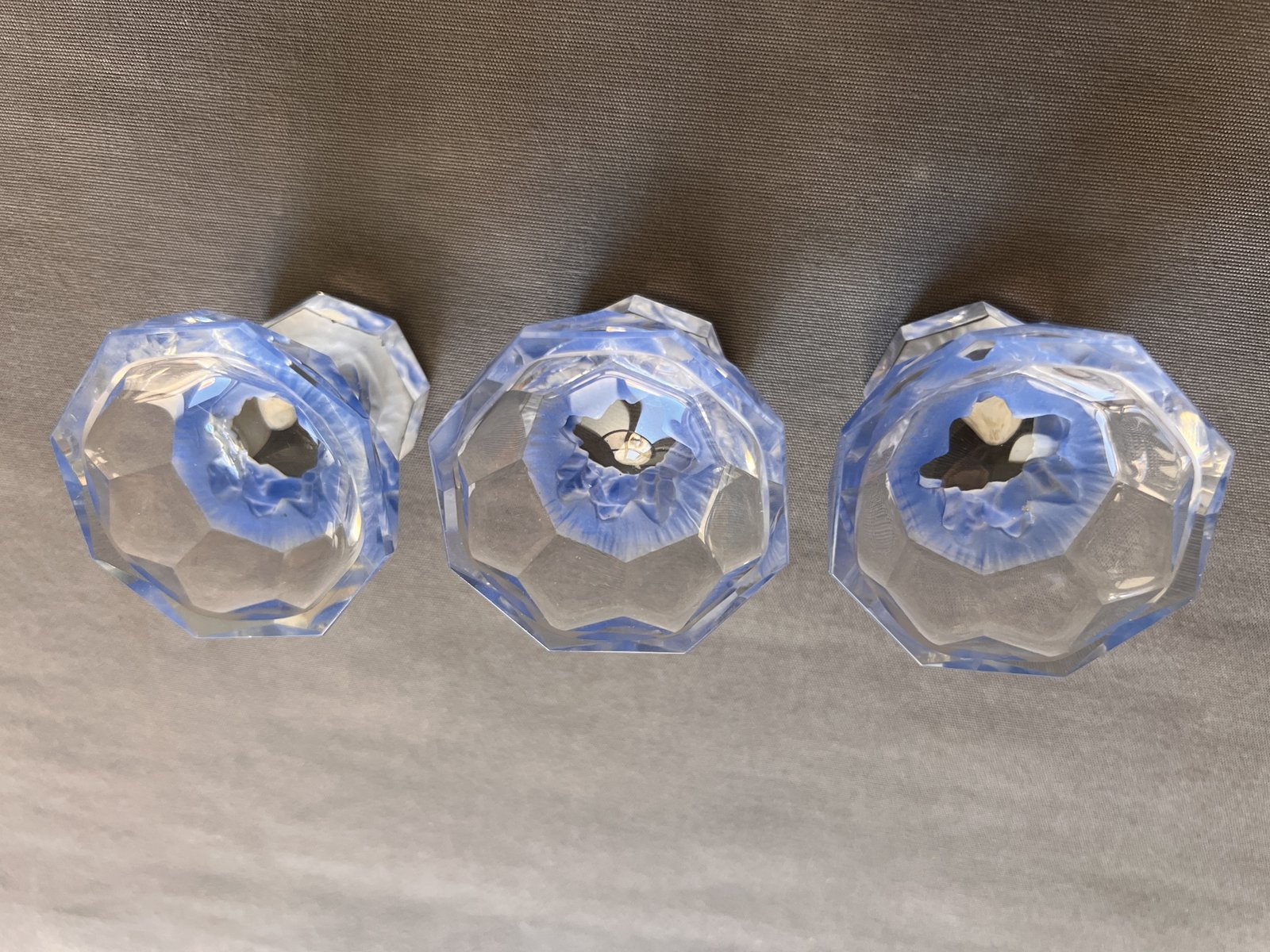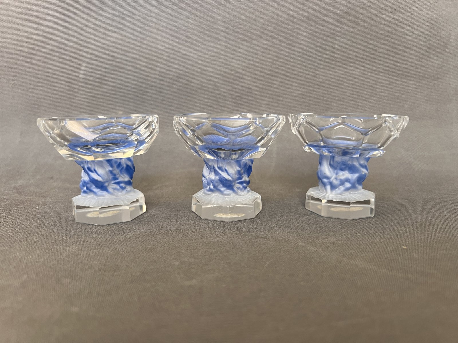 Czech Art Deco Bohemian Frosted Blue Crystal Glasses by Heinrich Hoffmann, 1930s, Set of 3