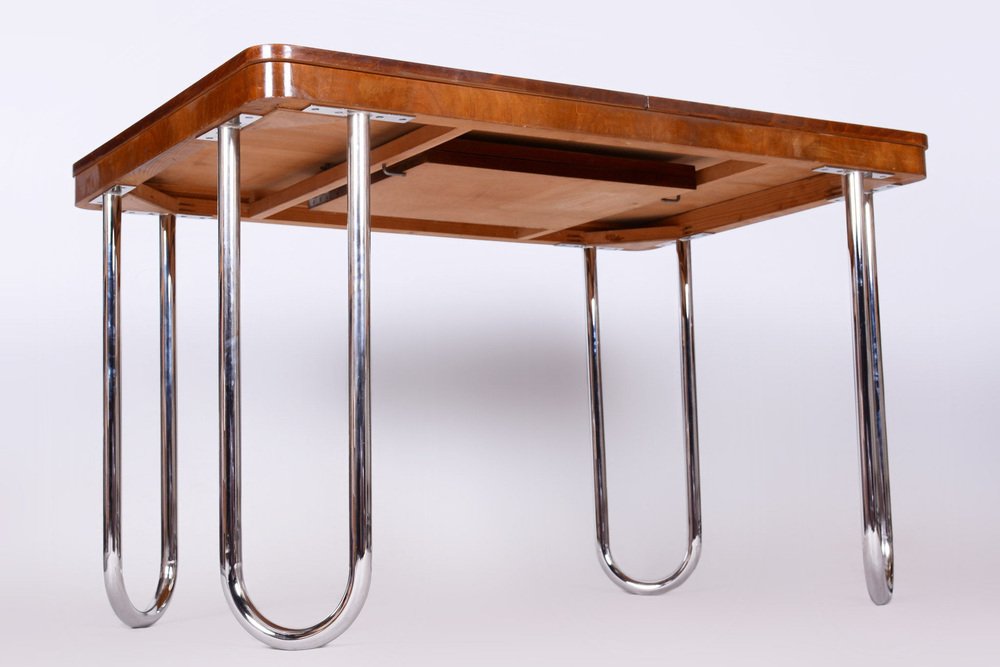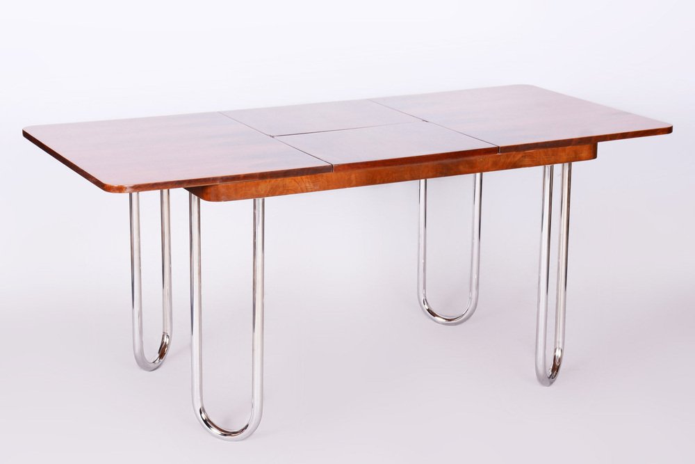 Czech Bauhaus Art Deco Folding Dining Table in Walnut attributed to J. Halabala for UP Závody, 1930s