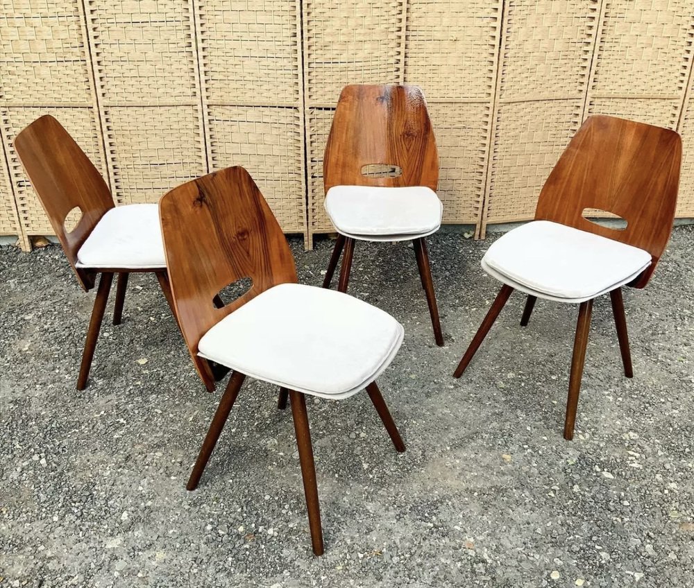 Czech Lollipop Dining Chairs by František Jirák for Tatra Nabytok NP, 1960s, Set of 4