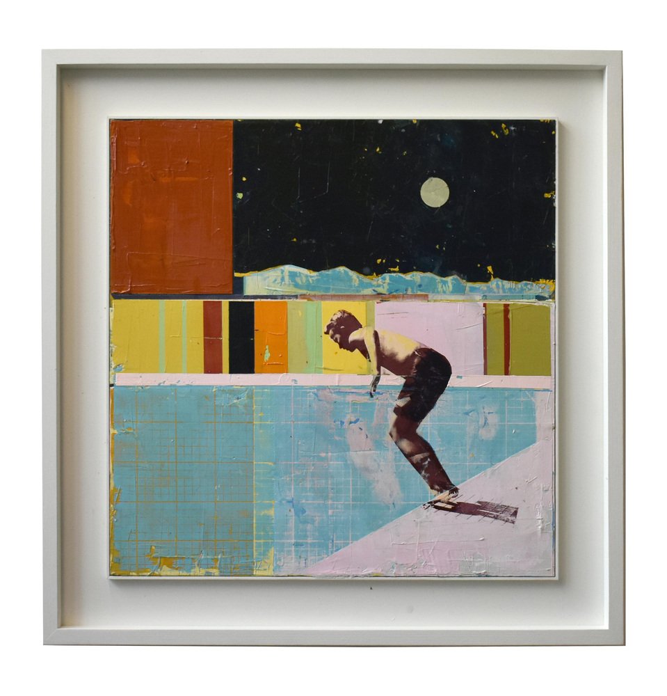 Dan Parry-Jones, Skater with Night Sky, Acrylic and Mixed Media on Board, 2024, Framed