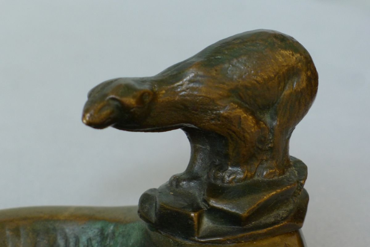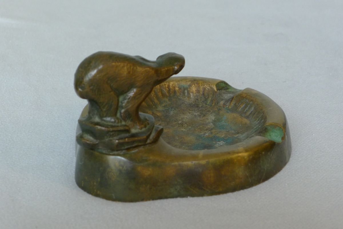 Danish Art Deco Bronze Ashtray with Polar Bear Figurine