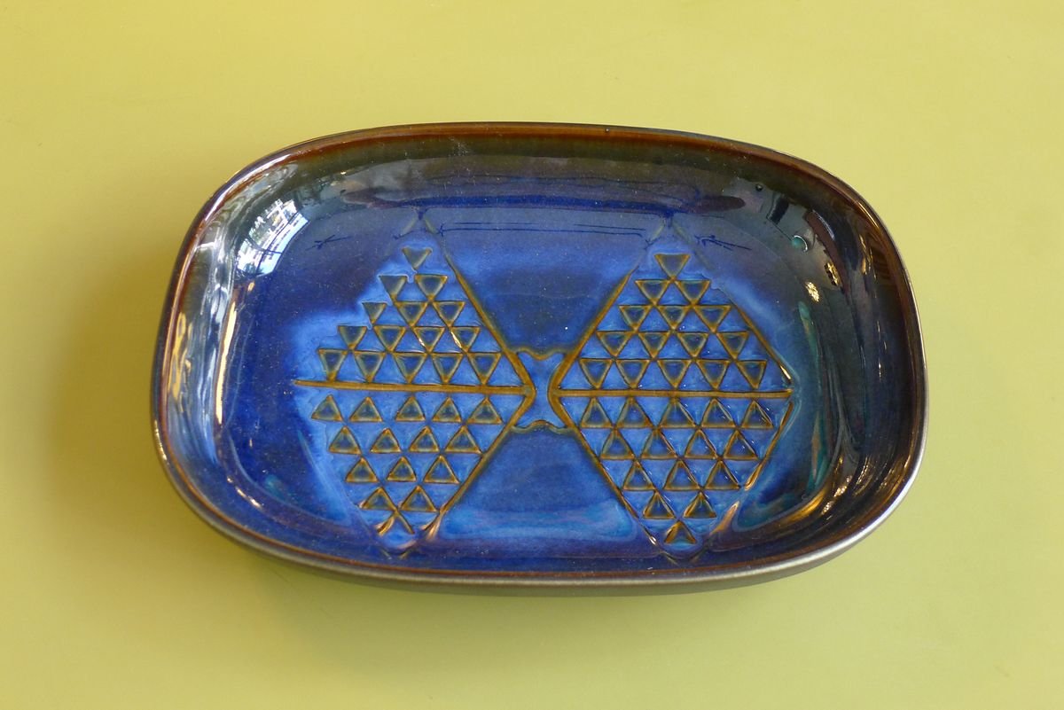 Danish Blue Ceramic Model 3332 Bowl with Diamond Pattern by Einar Johansen for Søholm, 1960s