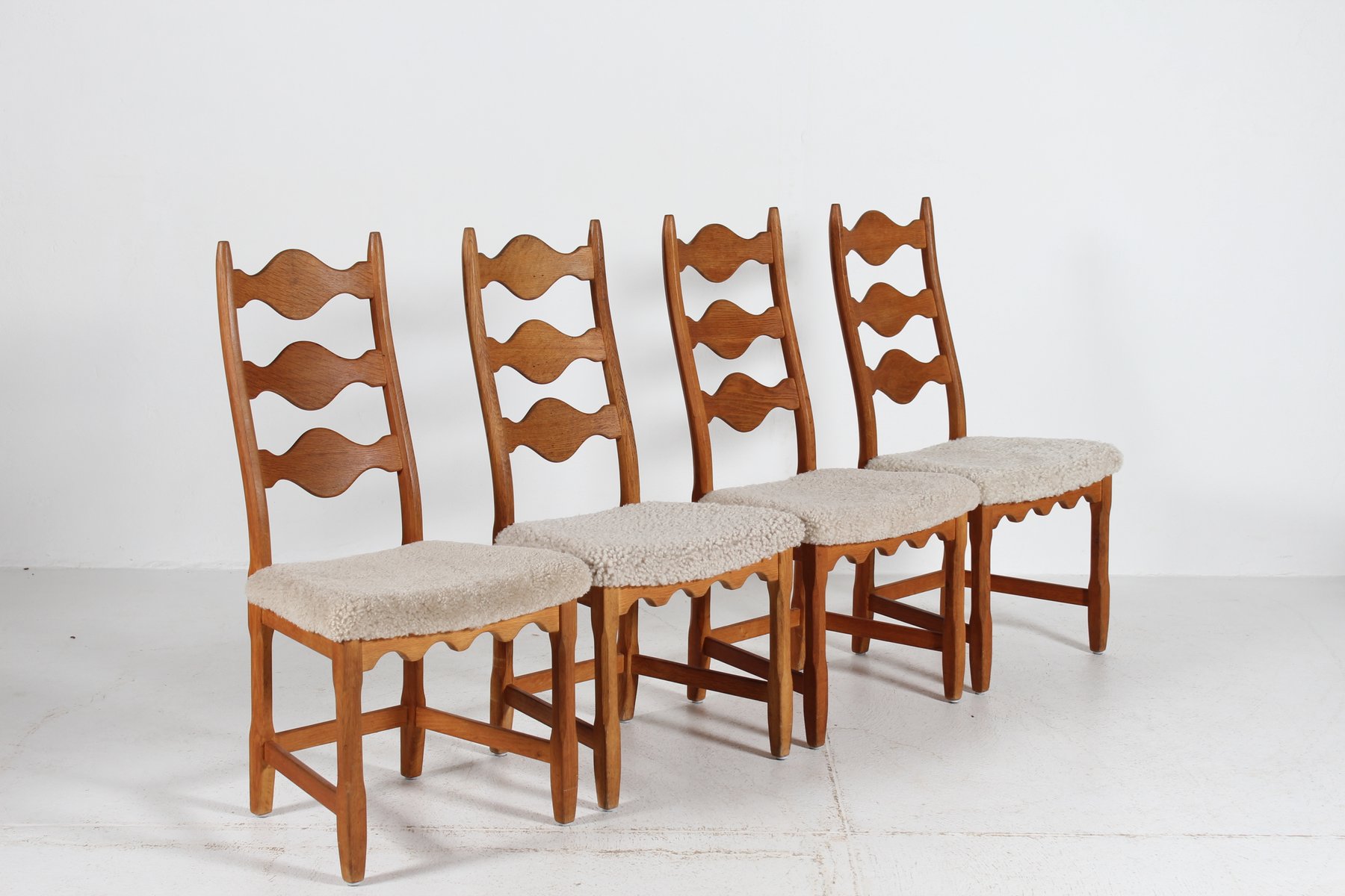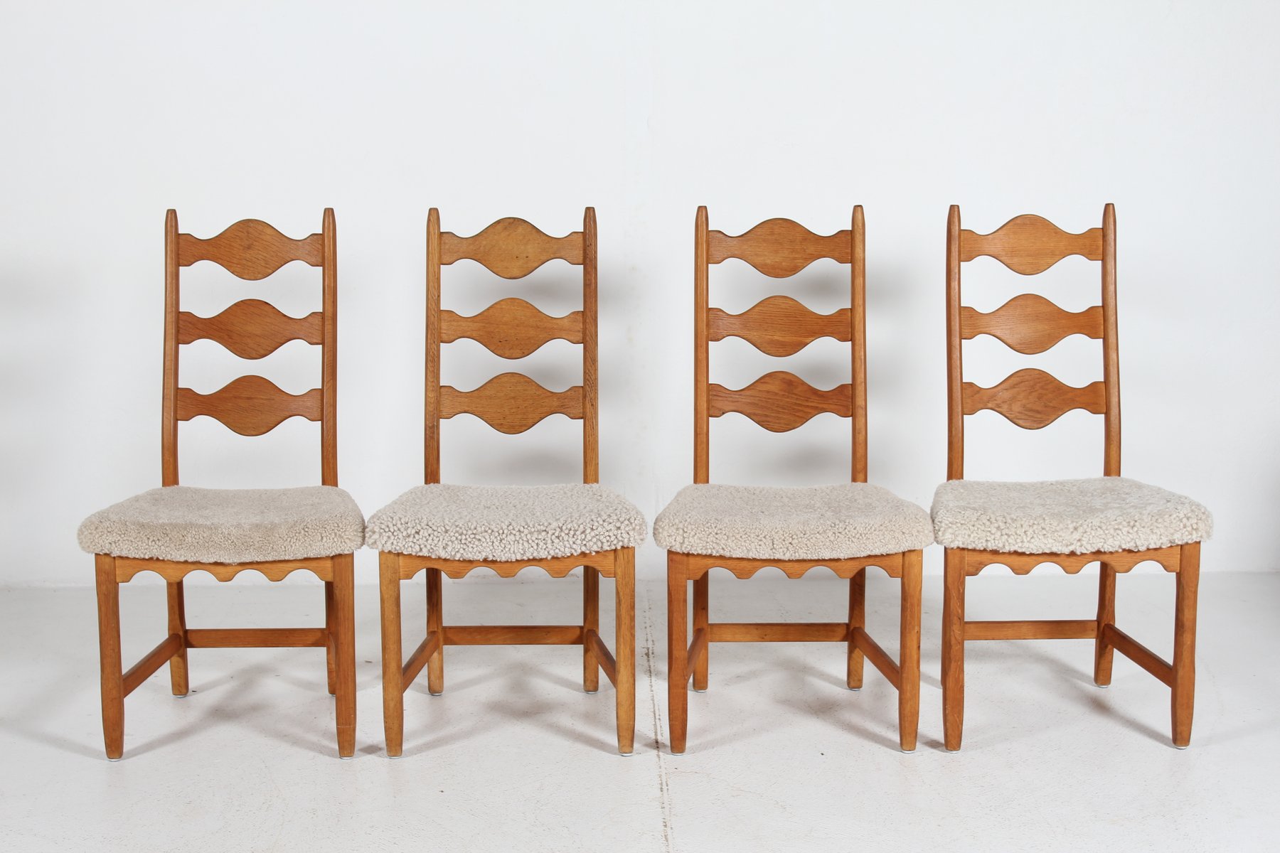 Danish Dining Chairs in Oak and Sheepskin by Henning Kjærnulf, 1970s, Set of 4