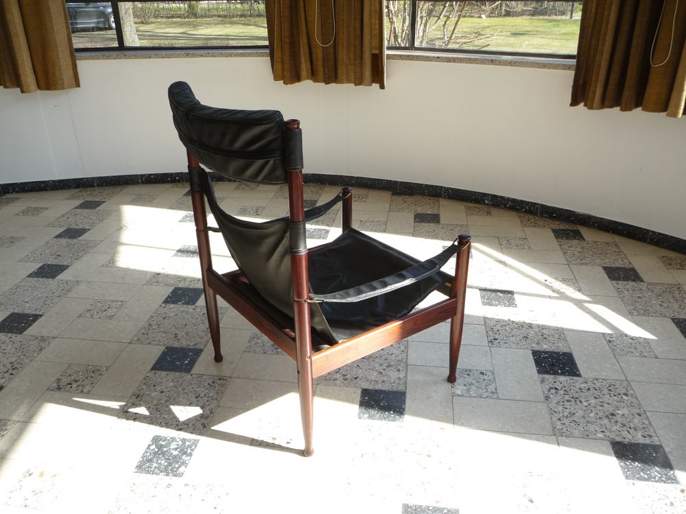 Danish Leather High Back Safari Armchair by Erik Wørts for Niels Eilersen, 1960s