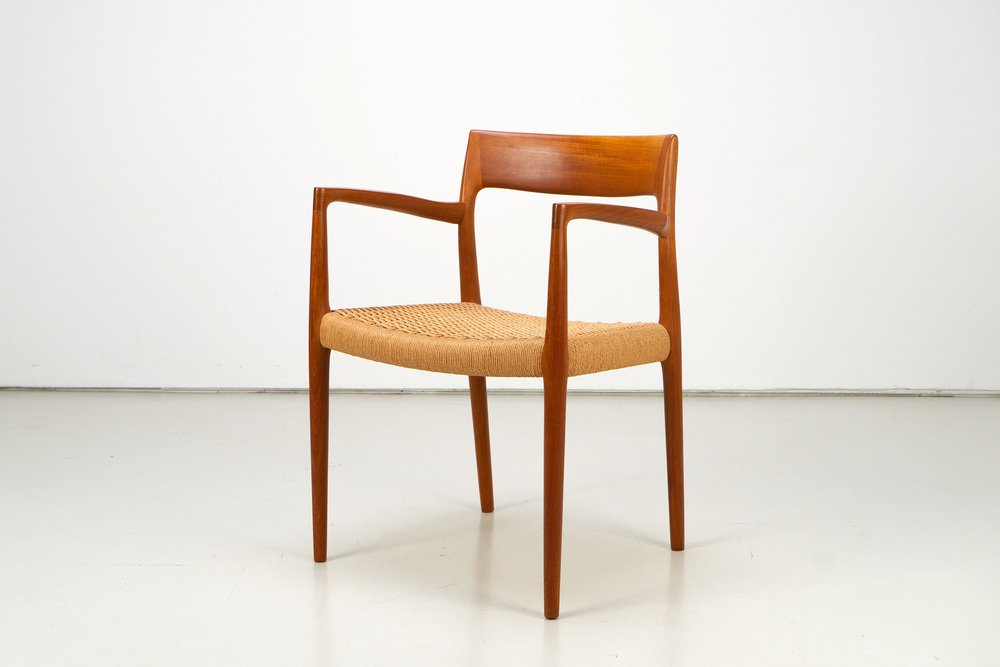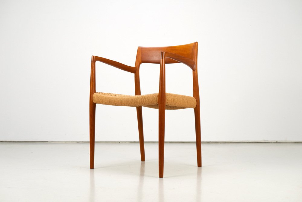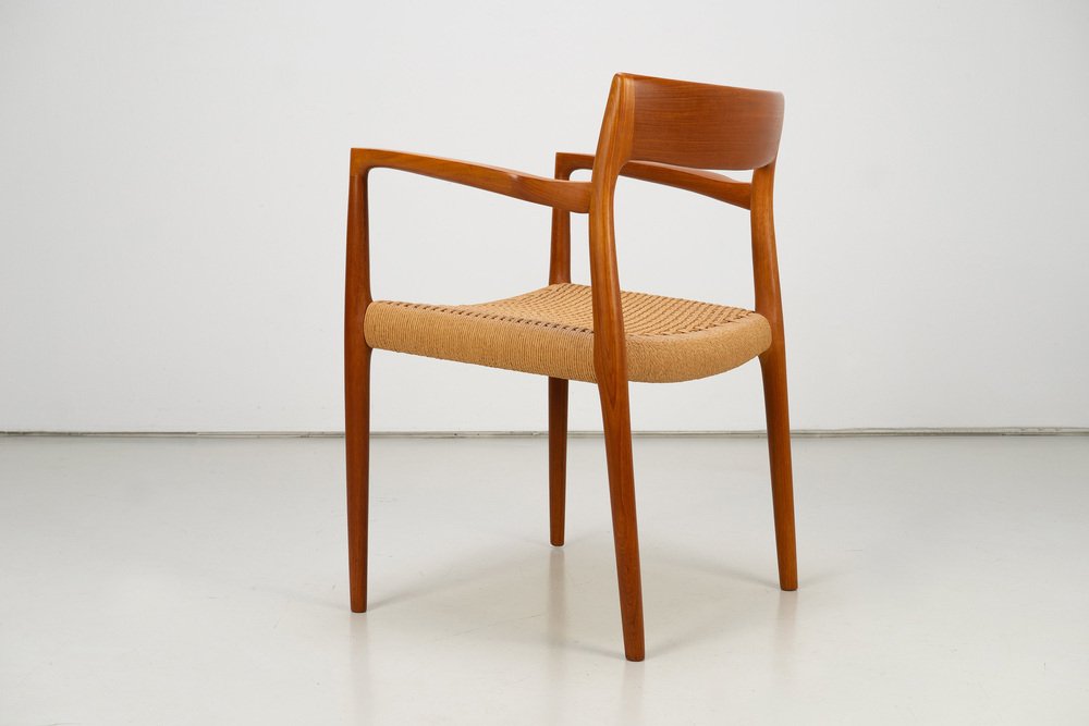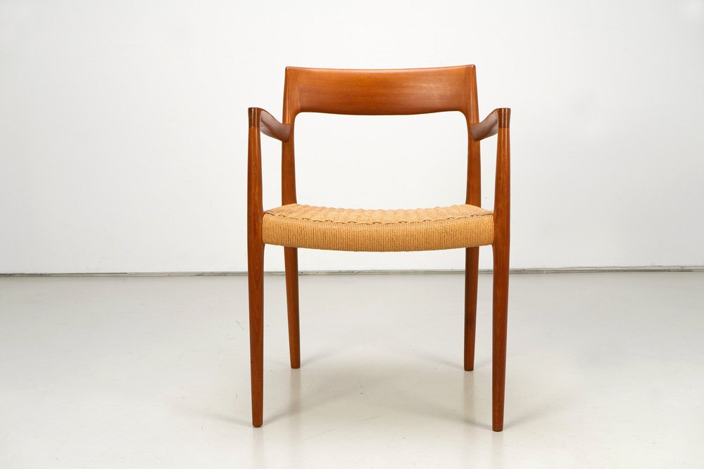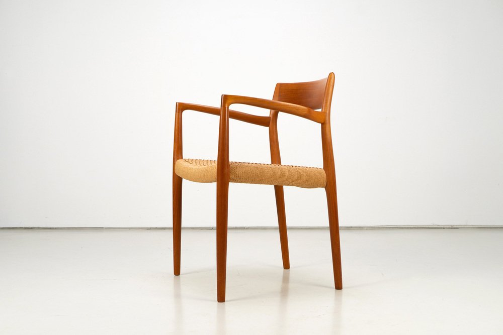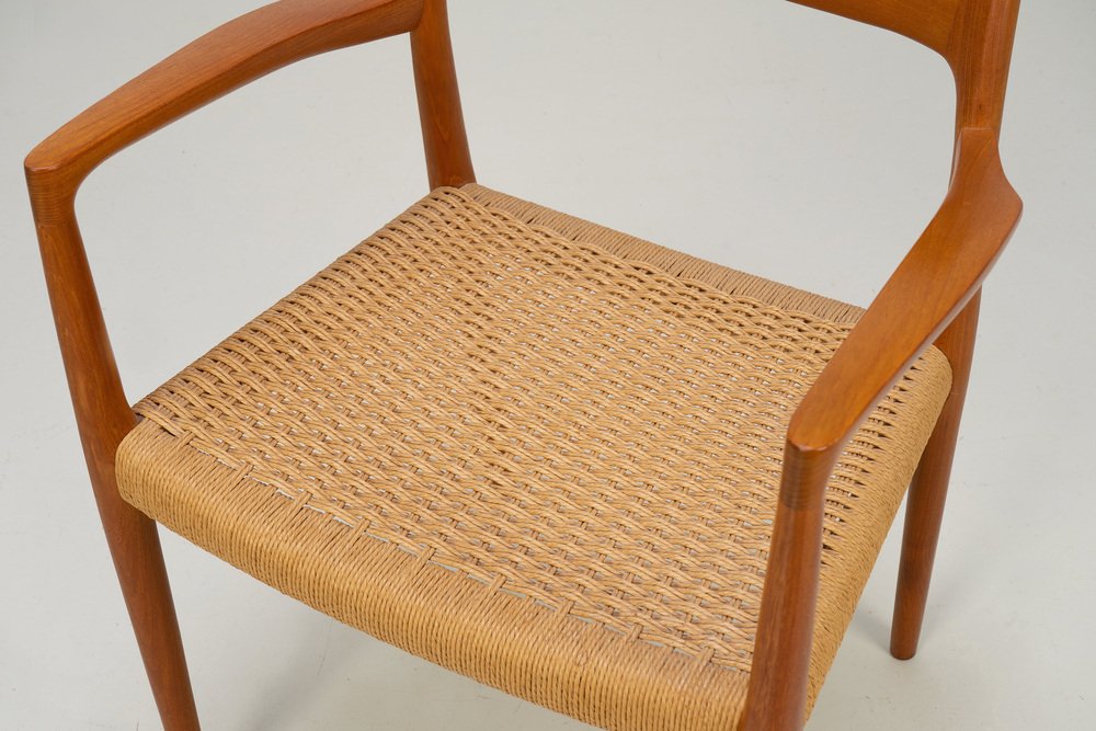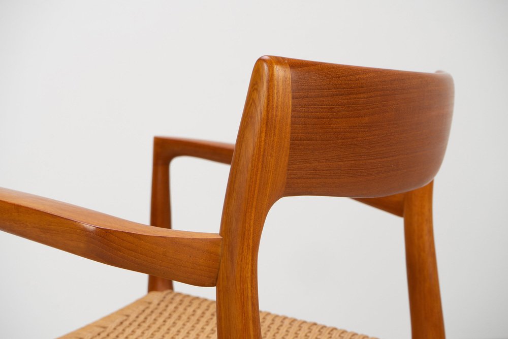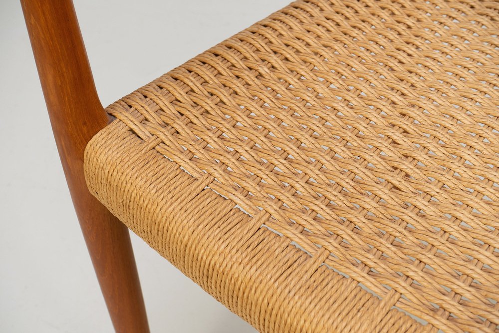 Model 77 Dining Chairs in Teak with Papercord Seats by Niels O. Møller for J.L. Møllers, Denmark, 1959, Set of 4