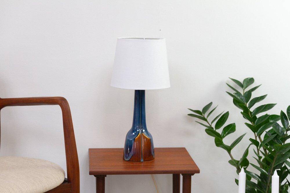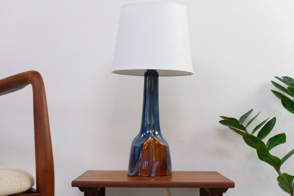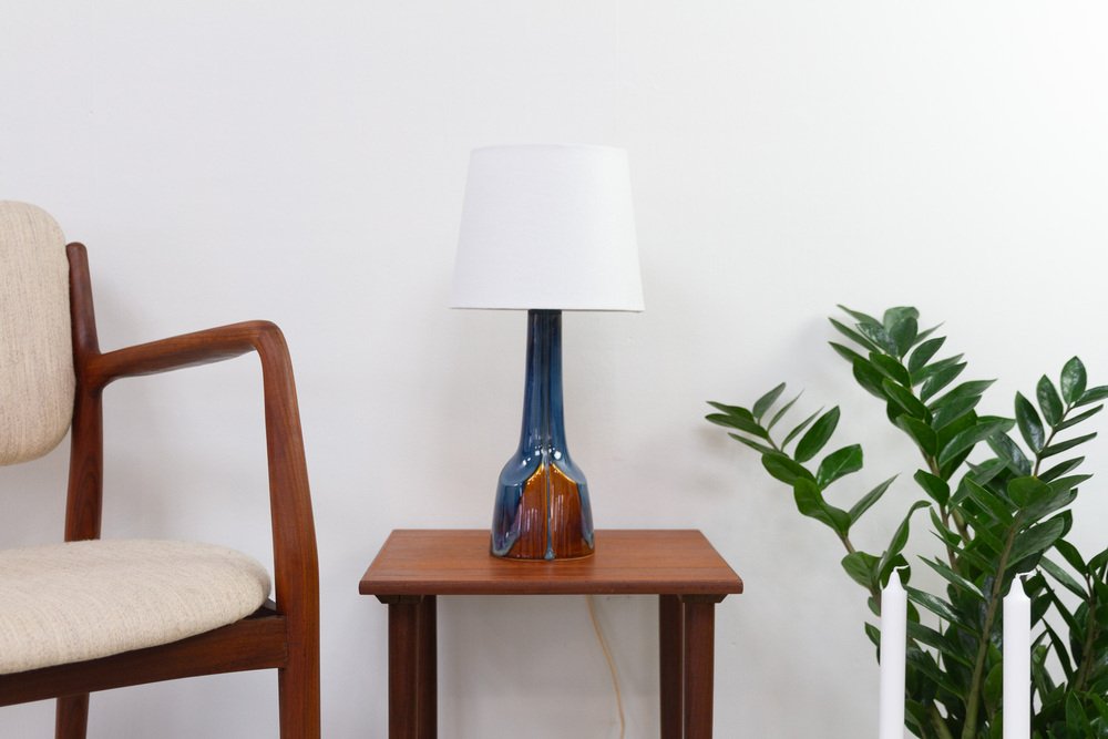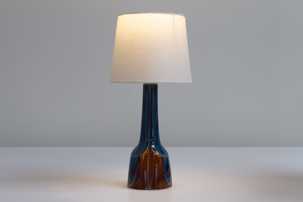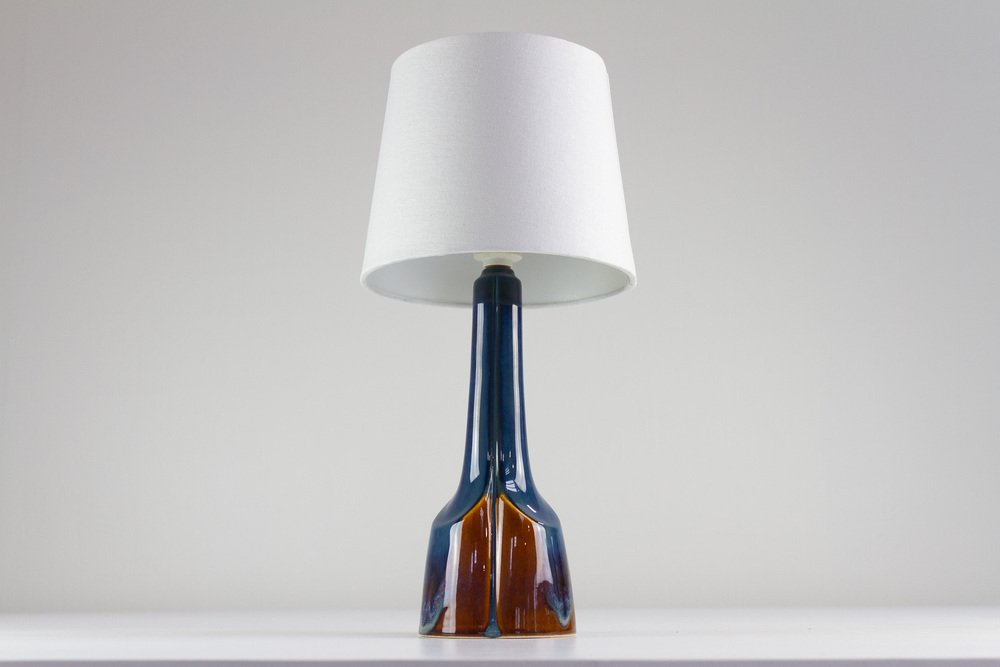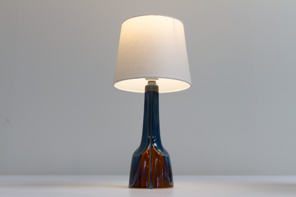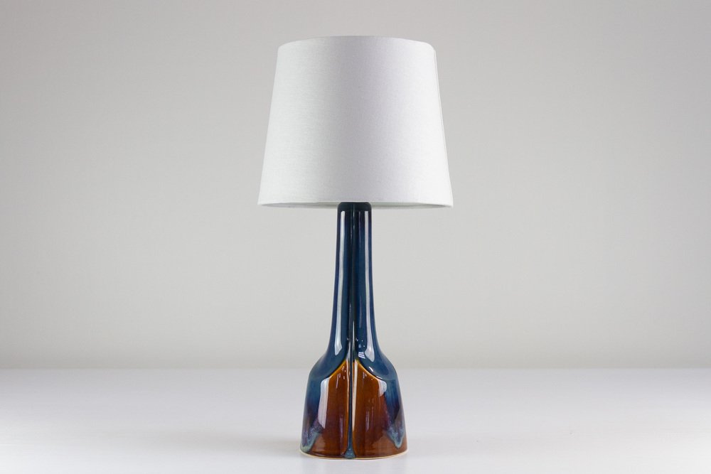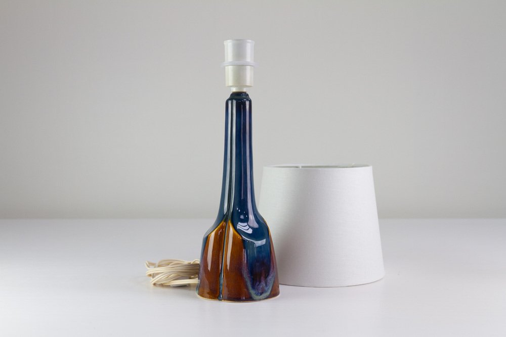 Danish Modern Blue and Brown Ceramic Table Lamp by E. Johansen for Søholm, 1960s