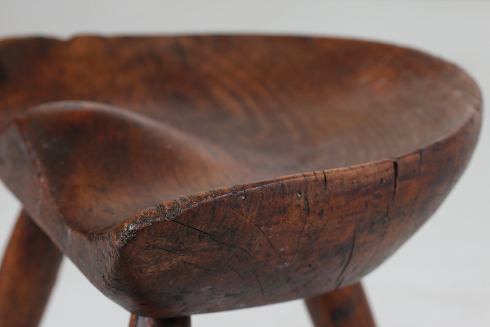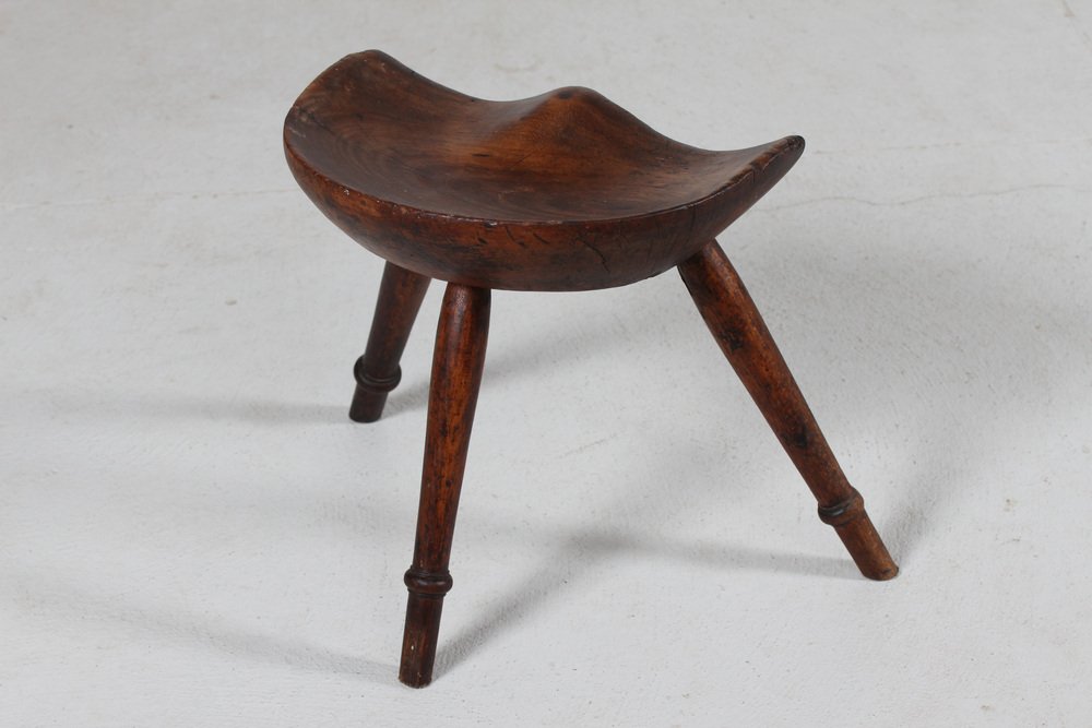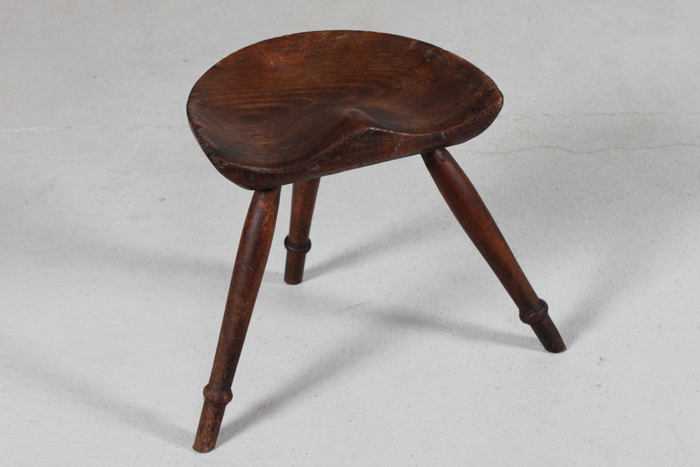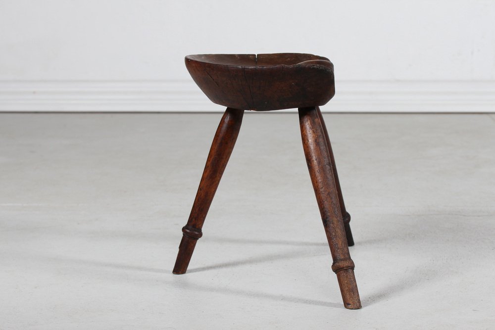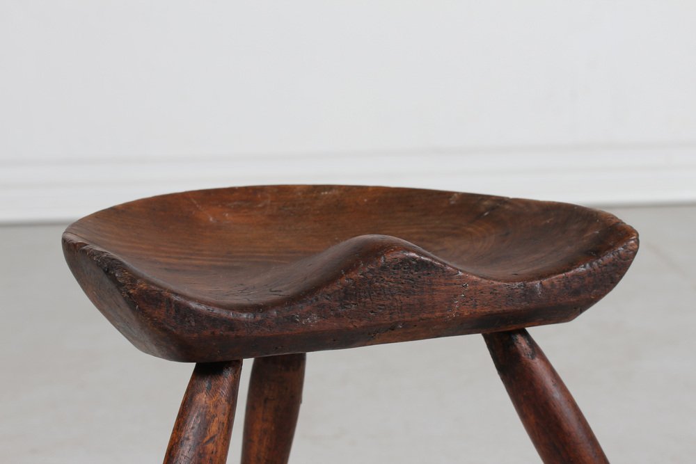 Danish Sculptural Wooden Milk Stool 3-Legged in the style of Mogens Lassen, 1920s
