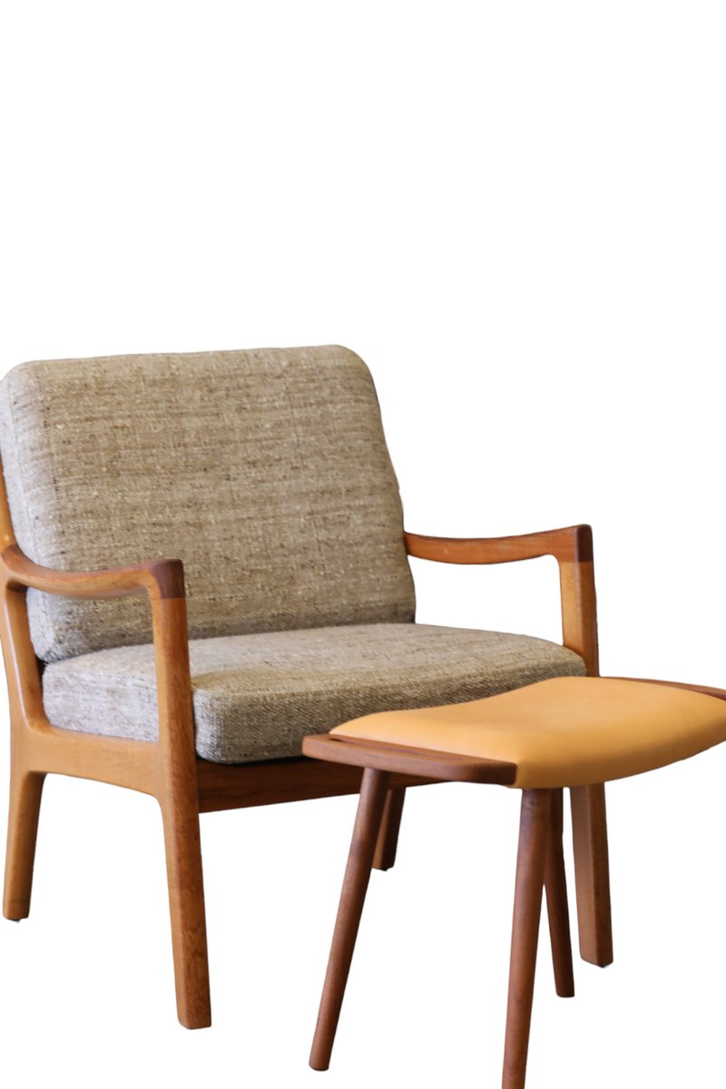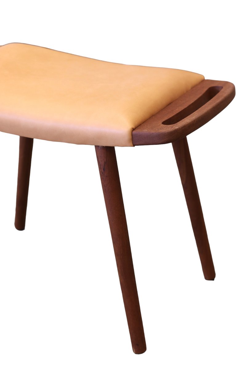 Danish Stool in Teak and Leather with Shaped Handles, 1960s