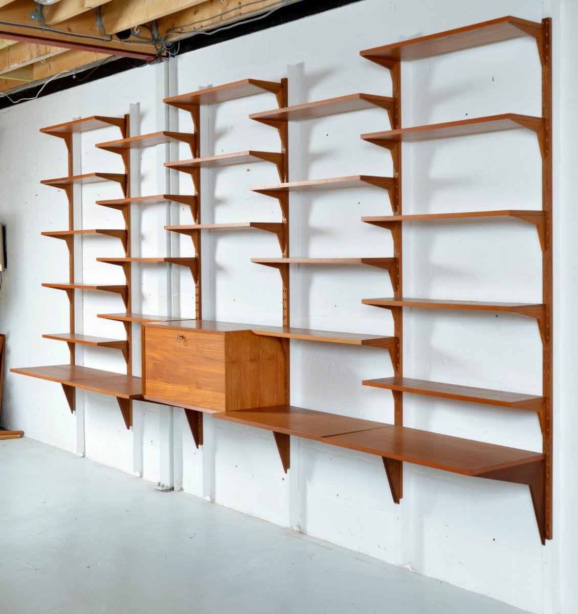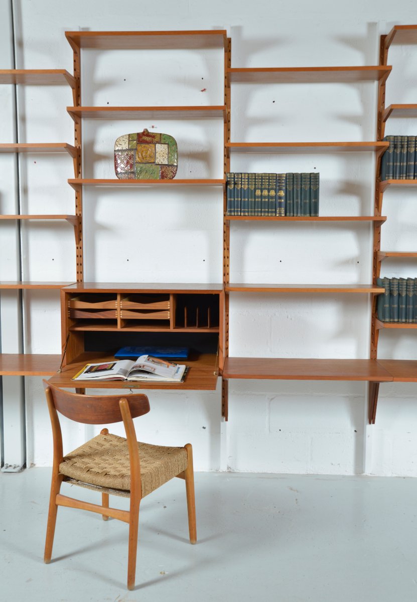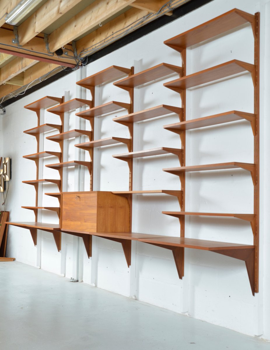Danish Teak 5-Bay Cado Modular Shelving System Bookshelf Library by Poul Cadovius for Cado, 1970s