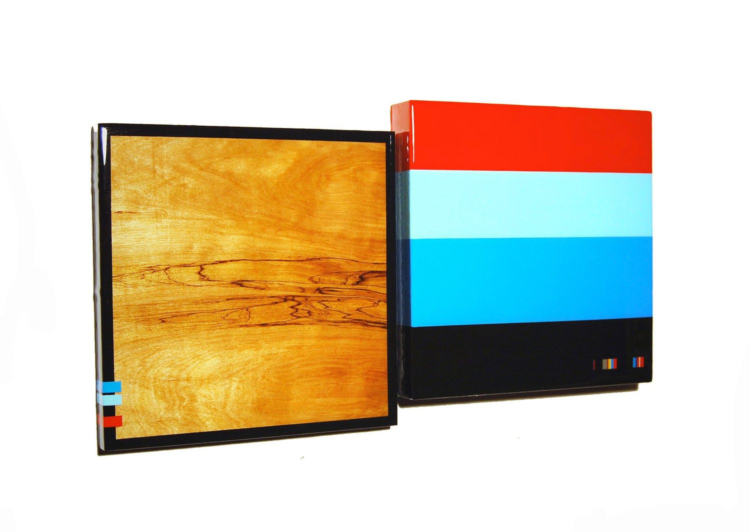 David E. Peterson Puzzle # 82, 2014 acrylic, birch, MDF, UV resin 14h x 14w x 3d in 35.56h x 35.56w x 7.62d cm DAVID E. PETERSON (b. 1979, USA) An abstract painter inspired by Product Design, Graphic Design and Architecture, David E. Peterson was born in Grand Rapids, Michigan in 1979. He has exhibited his work throughout the United States, Argentina, Europe, and Asia. David Peterson’s work is included in the collections of the Museum of New Art (Detroit), Progressive Art Collection, Bilzin and Sumberg, Home Depot, Related Group, among many others. His work has been profiled on Forbes, Loft Magazine, Southern Living, CNN, and Detroit Free Press. David holds a BFA from the College for Creative Studies in Detroit, MI. David E. Peterson was named "One of the Top 20 Professionals Under 40" in Miami's Brickell Magazine. His installation JCrew Women's Tops & Bottoms was also featured this in New York Magazine, Design (Spring 2013). Peterson was featured in “New American Paintings”, Issue 112”, which was curated by Rene Morales of the Perez Museum (summer, 2014). " Industrial Design informs my work. Inspiration might come from a brightly-colored sneaker, an eye-catching dress, an intricate watch or a well-arranged print ad. Once my interest is captured, I immediately begin translating the design into my work. I begin the process by systematically identifying the most important elements of the industrial design. I am looking at color, line, shape, scale, and finish. These key traits are broken down, then reconstructed as the foundation for my own composition in Photoshop. This computer rendering becomes my mock-up and I refer to it as I build my panel, paint it and apply the finish. My studio becomes an artist’s assembly line; the end result is a precise Art Object. I find this order by reducing the elements in the system that contrasts a state of entropy with a predetermined structural order that is based on the principles of design and architecture. The pieces are acrylic paint, MDF, and exotic wood in layers of resin. The resin creates depth and enables the piece to be viewed on multiple levels." Peterson’s work is in the permanent collection of the Museum of New Art in Detroit, as well as many other notable public and private art collections.