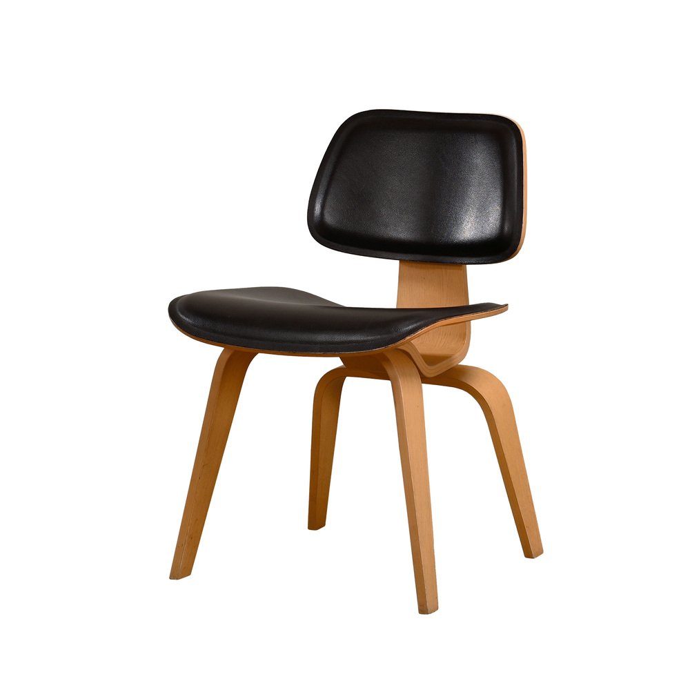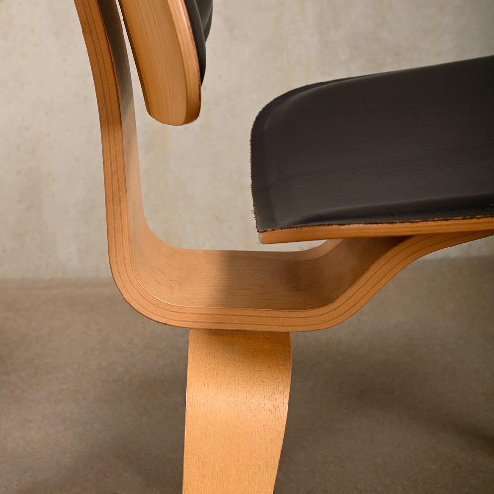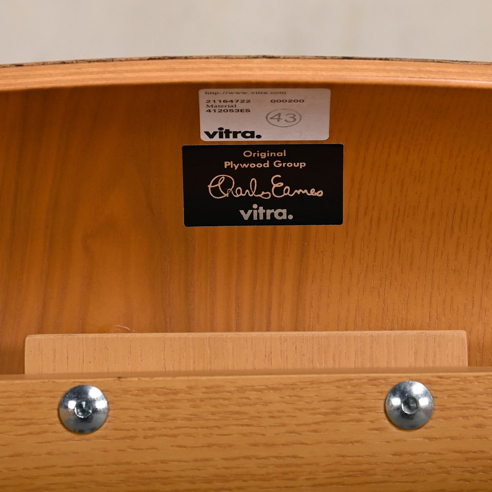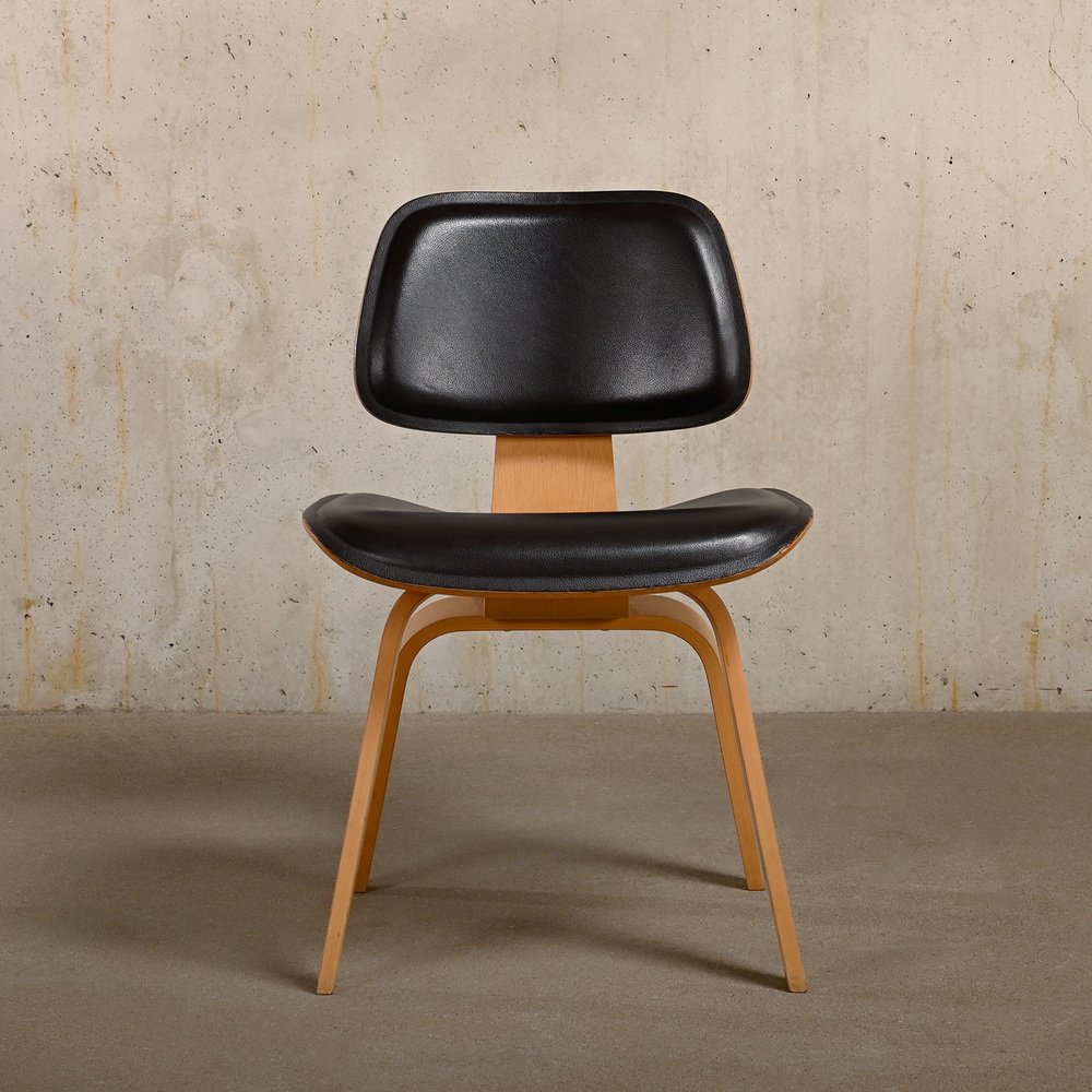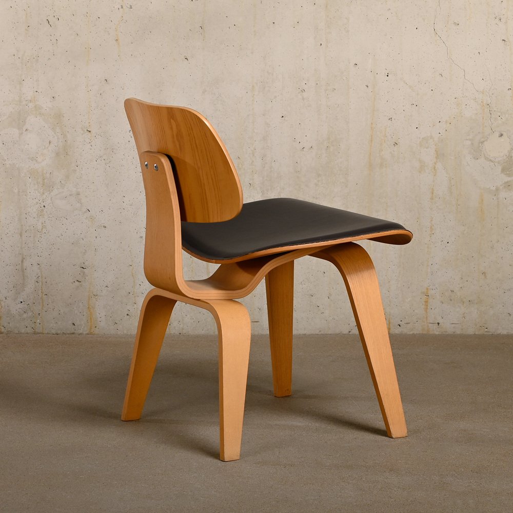 DCW Dining Chair in Ash with Dark Brown Leather Seat by Charles & Ray Eames for Vitra, 1990s