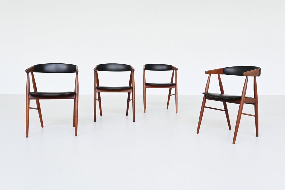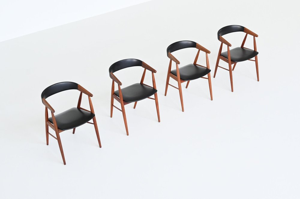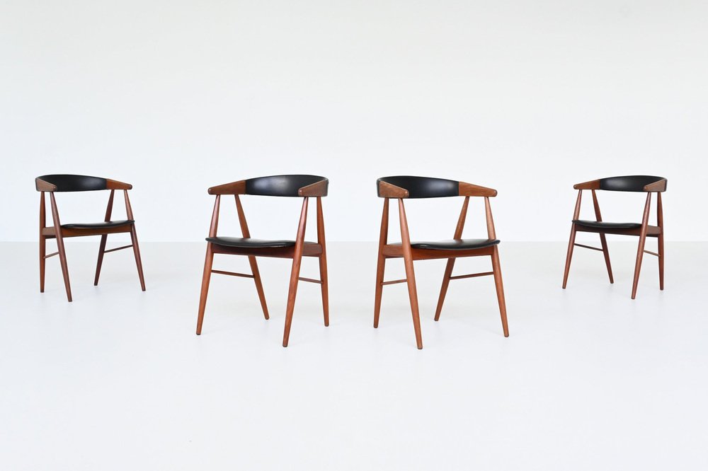 Dining Chairs in Teak by Ejnar Larsen & Aksel Bender, Set of 4
