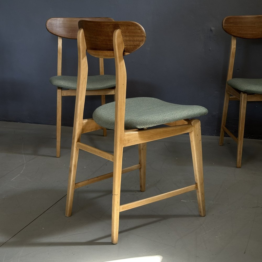 Dining Chairs in Wooden Frame and Fabric Seat, 1960s, Set of 4