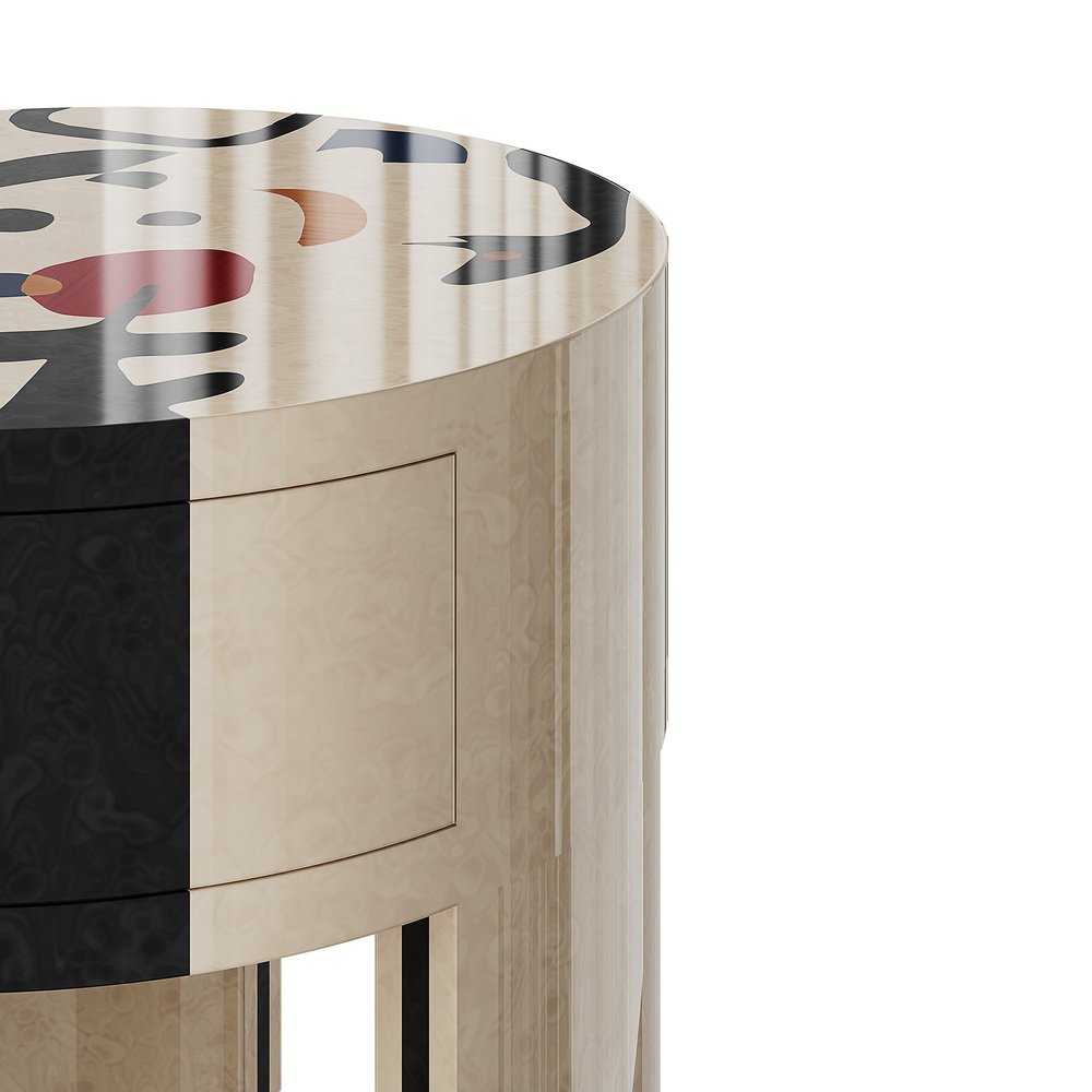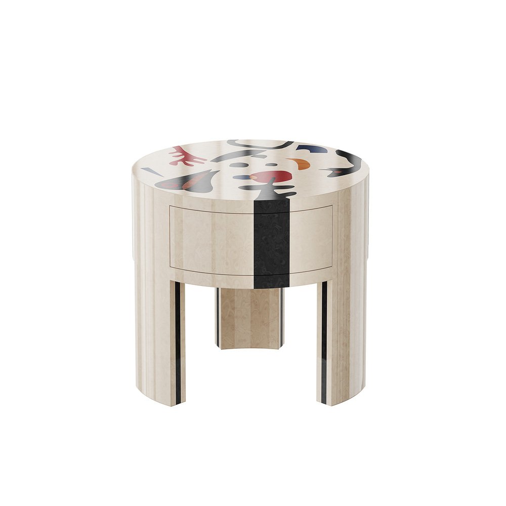 Dolores Bedside Table with Surrealist Print in White Wood by HOMMÉS Studio