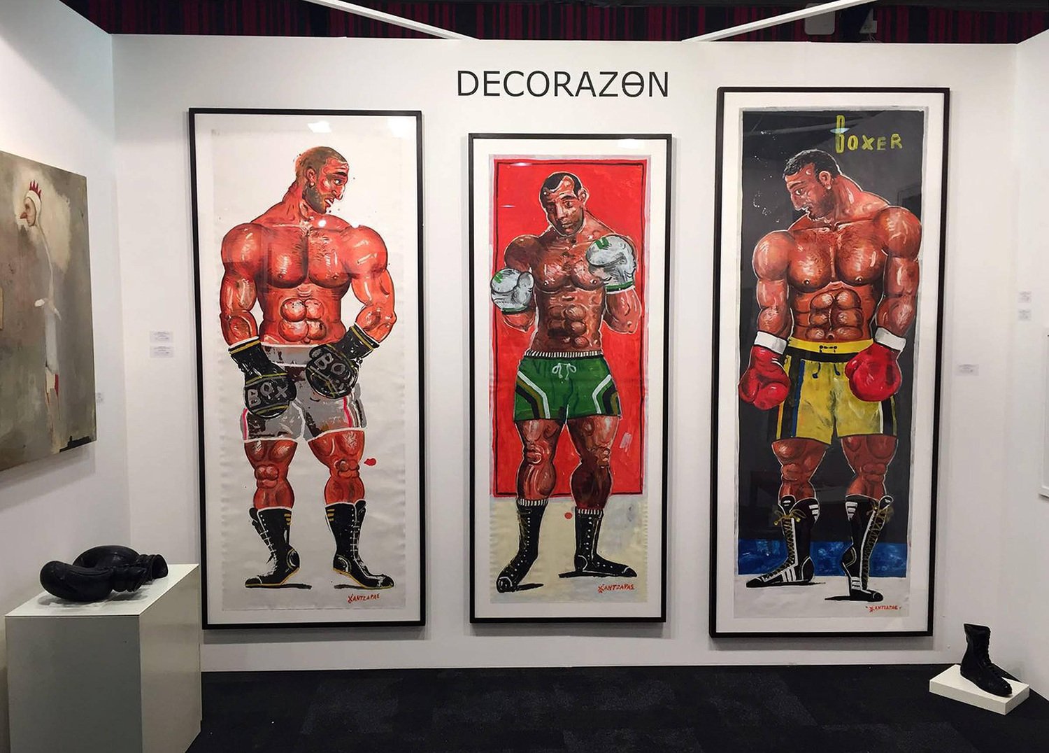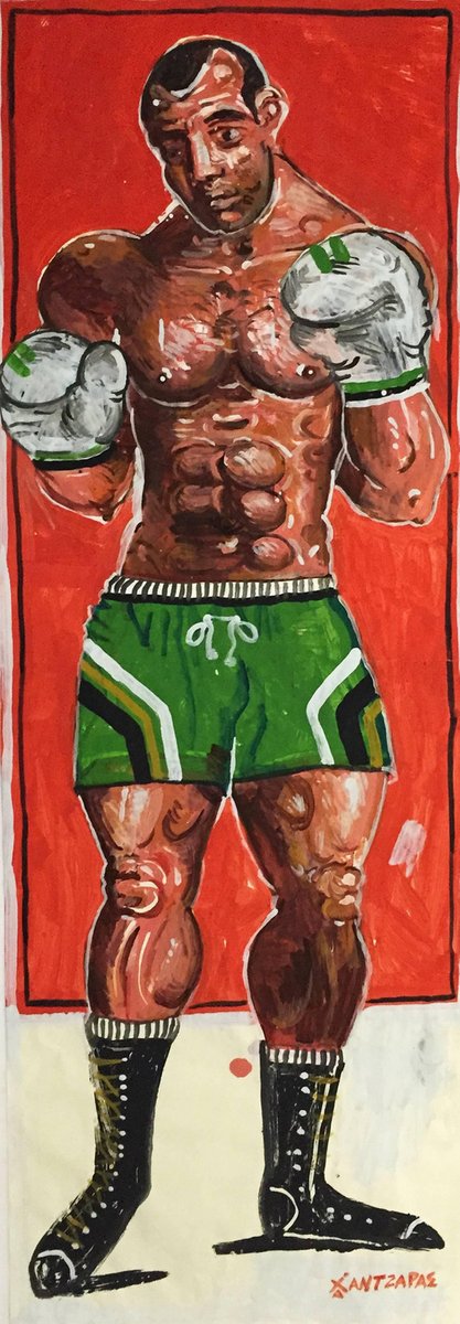 Dorieus, Lifesize Boxer Painting, Oil and Acrylic on Paper, Custom Wood Framed, 2016