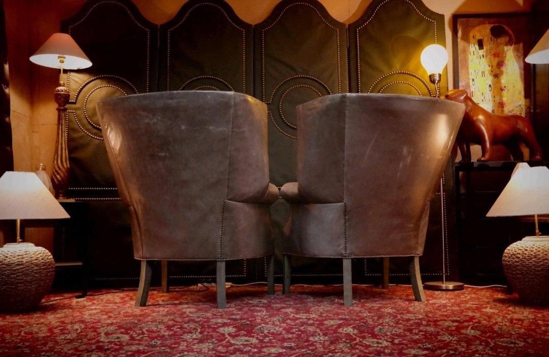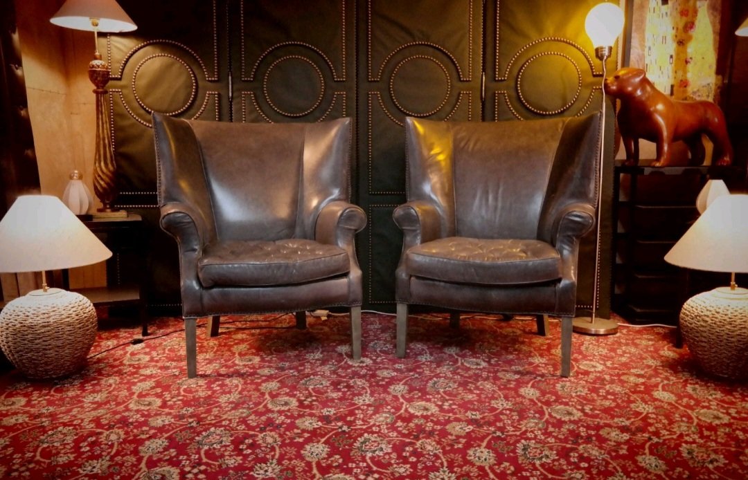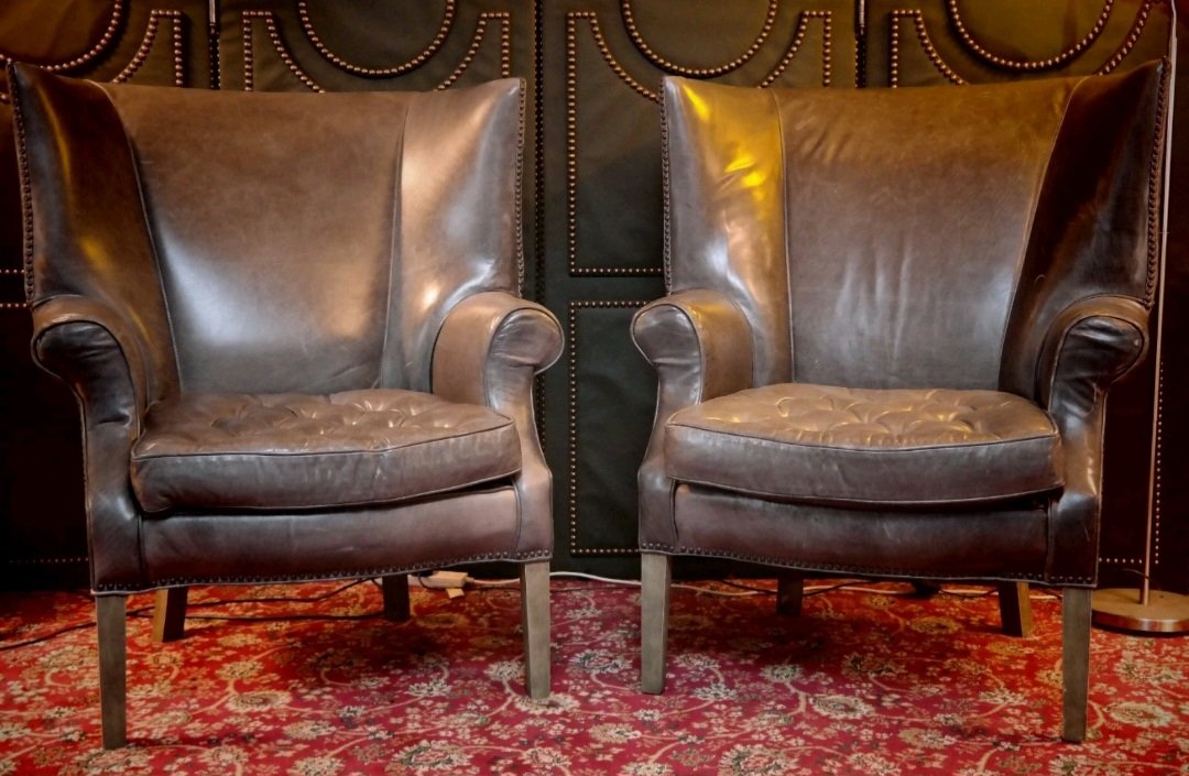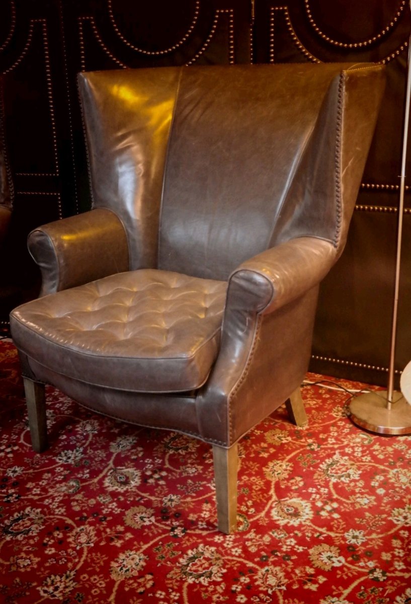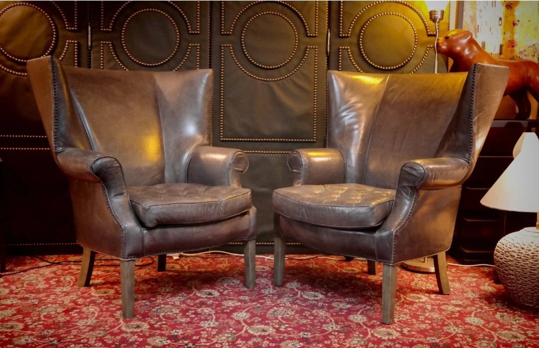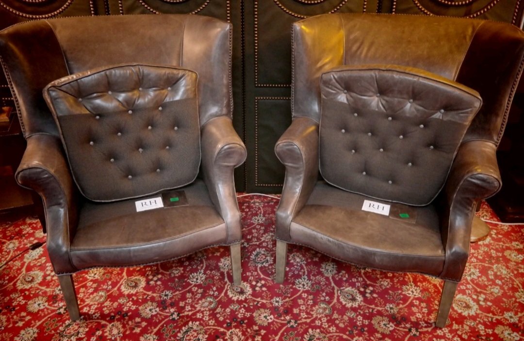 Drake Armchairs in Graphite Leather by Ralph Lauren for Restoration Hardware, 2010s, Set of 2