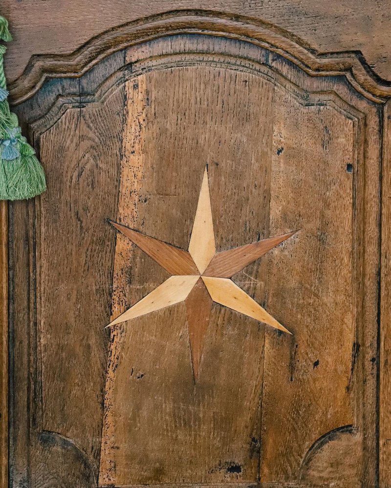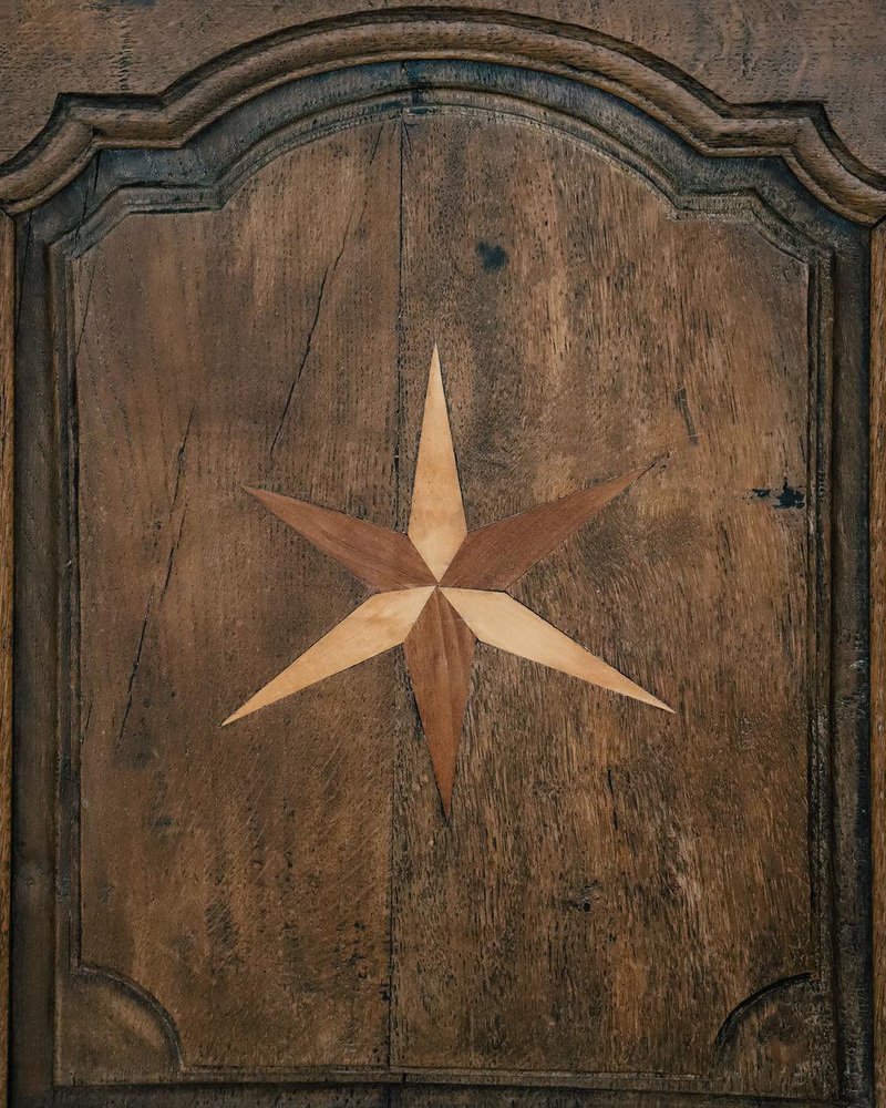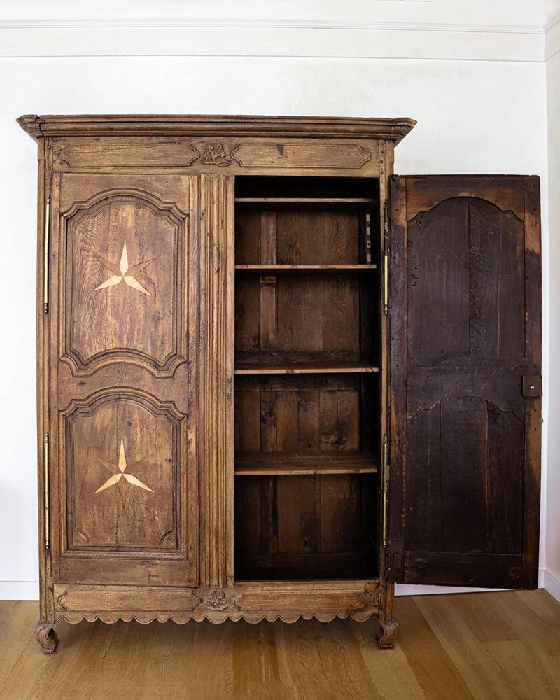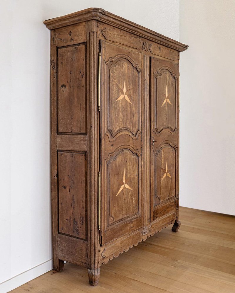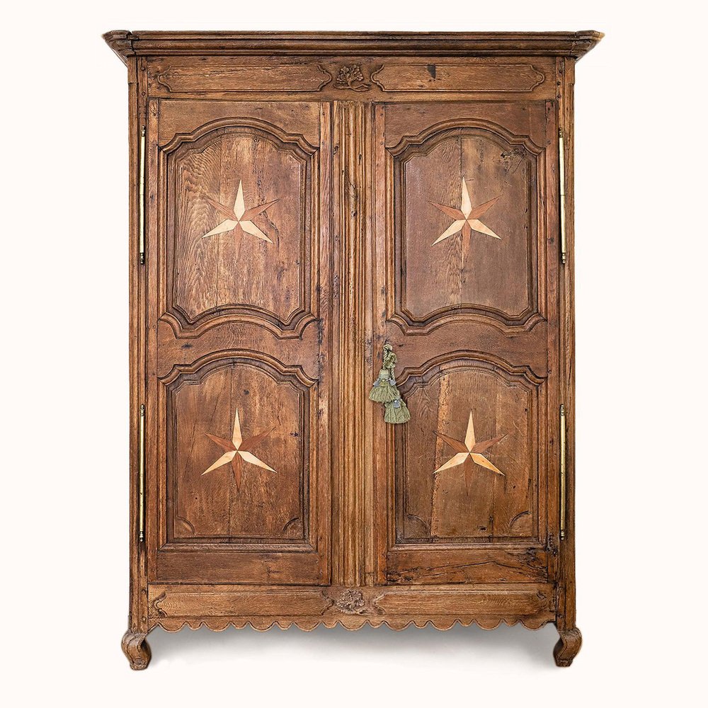 Early 19th Century French Louis Xv Style Armoire or Wardrobe with Star Shaped Inlays