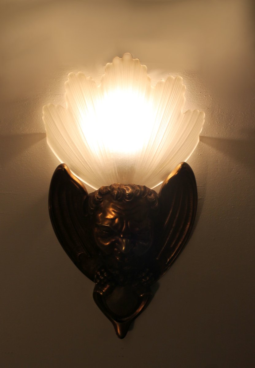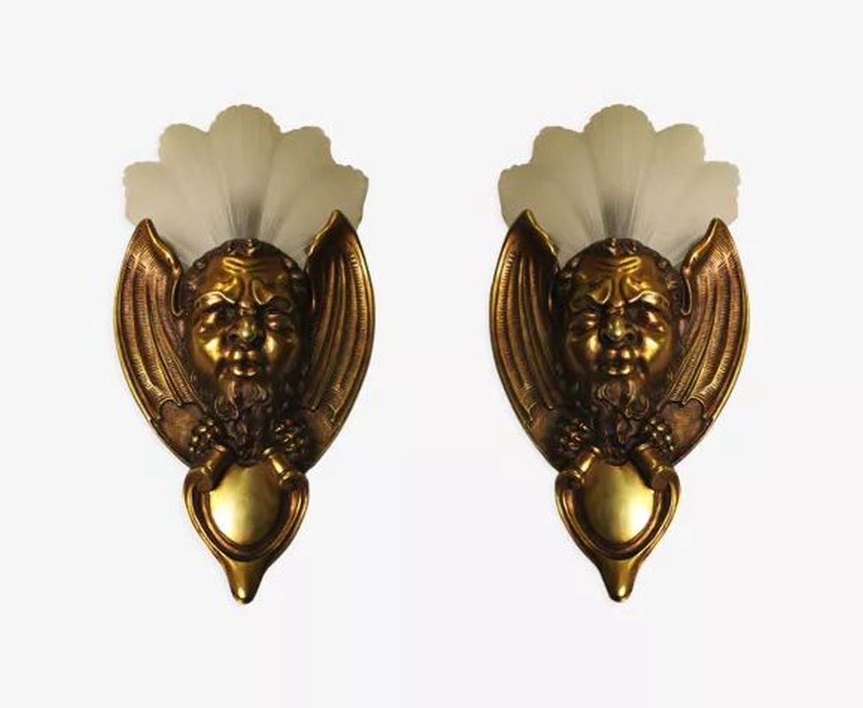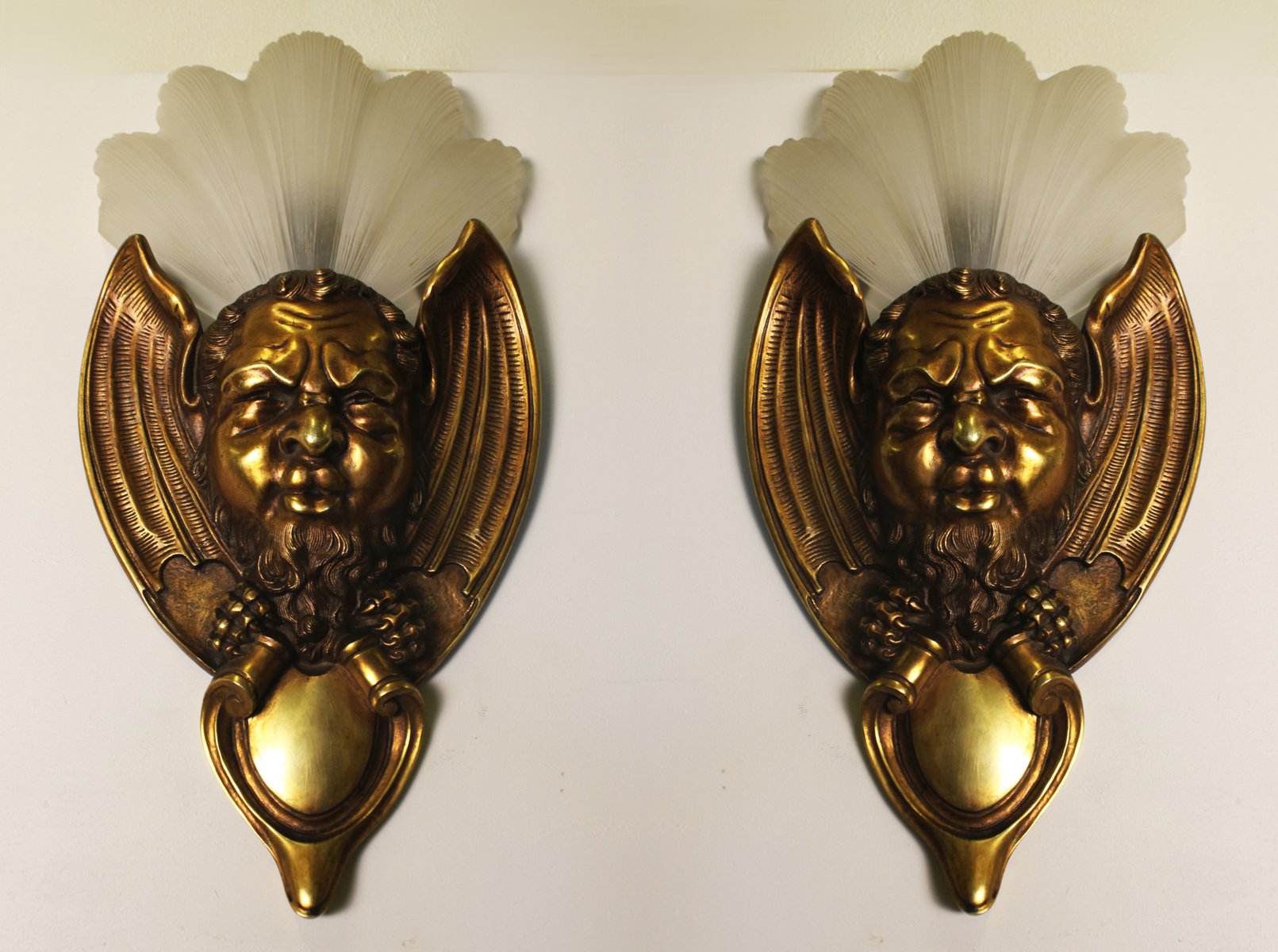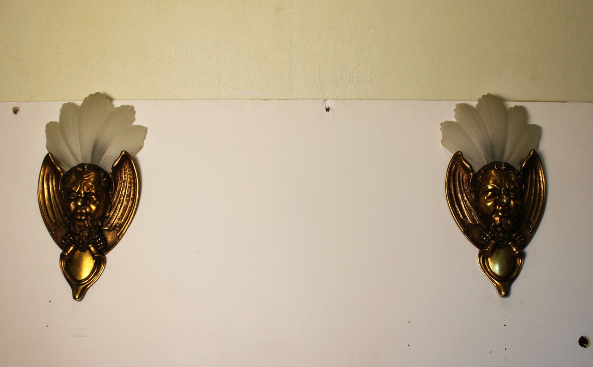 Early 20th Century Art Deco Style Bronze Wall Lights, Set of 2
