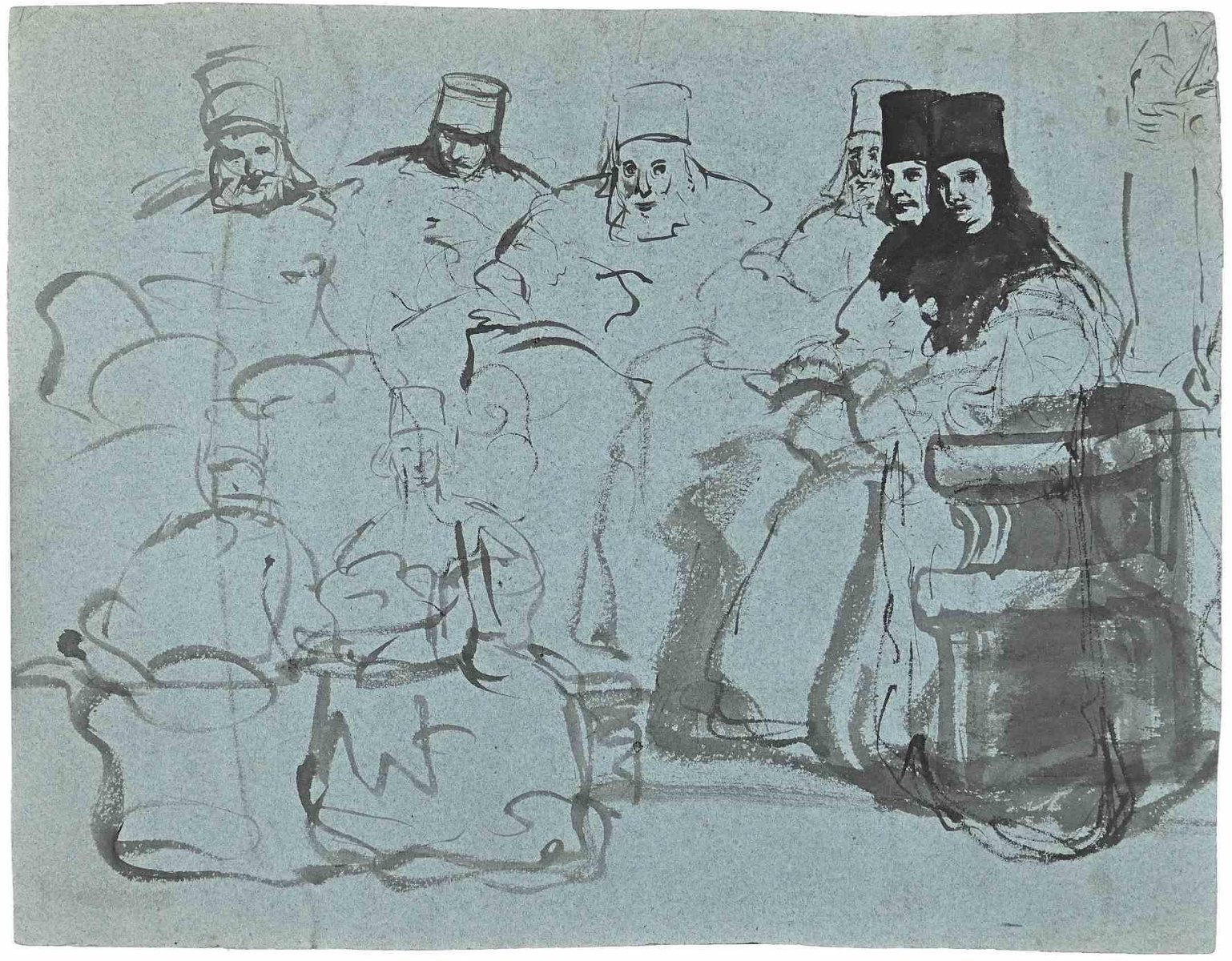 Edouard Dufeu, Popes, Watercolor on Paper, Mid 20th Century