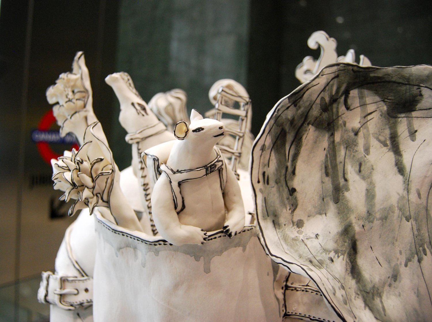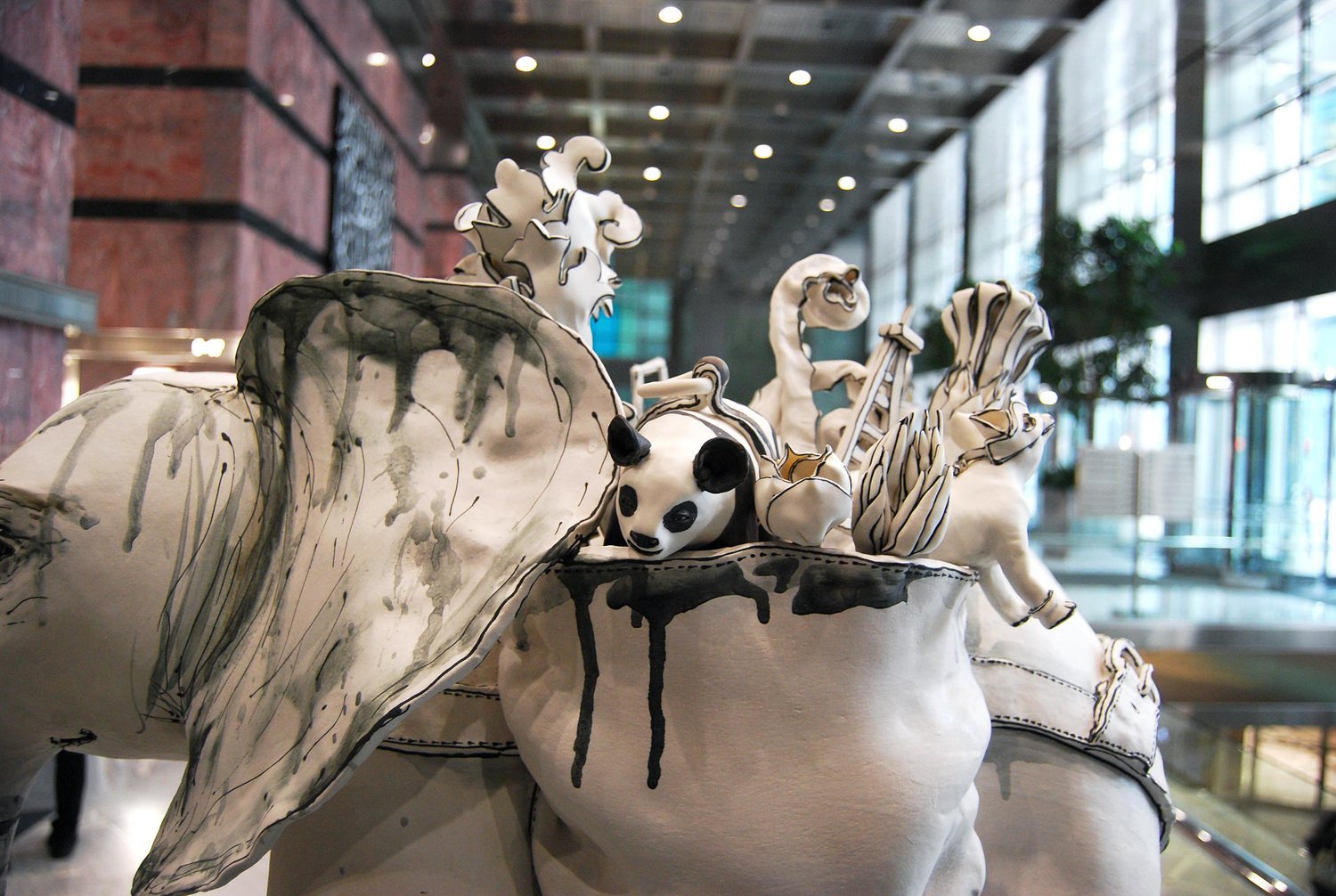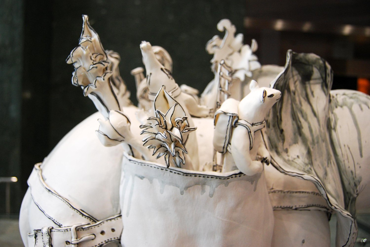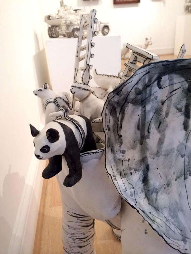 Elephant and Friends, Porcelain Freestanding Ceramic Sculpture with Animals, 2019