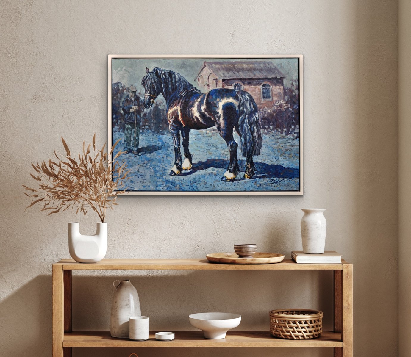 Elin Sian Blake, Fronarth Northern Star, Welsh Cob Native Horse Breed of Wales, 2010, Oil on Canvas, Framed