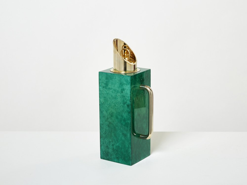 Emerald Green Goatskin & Brass Thermos Carafe by Aldo Tura, 1960