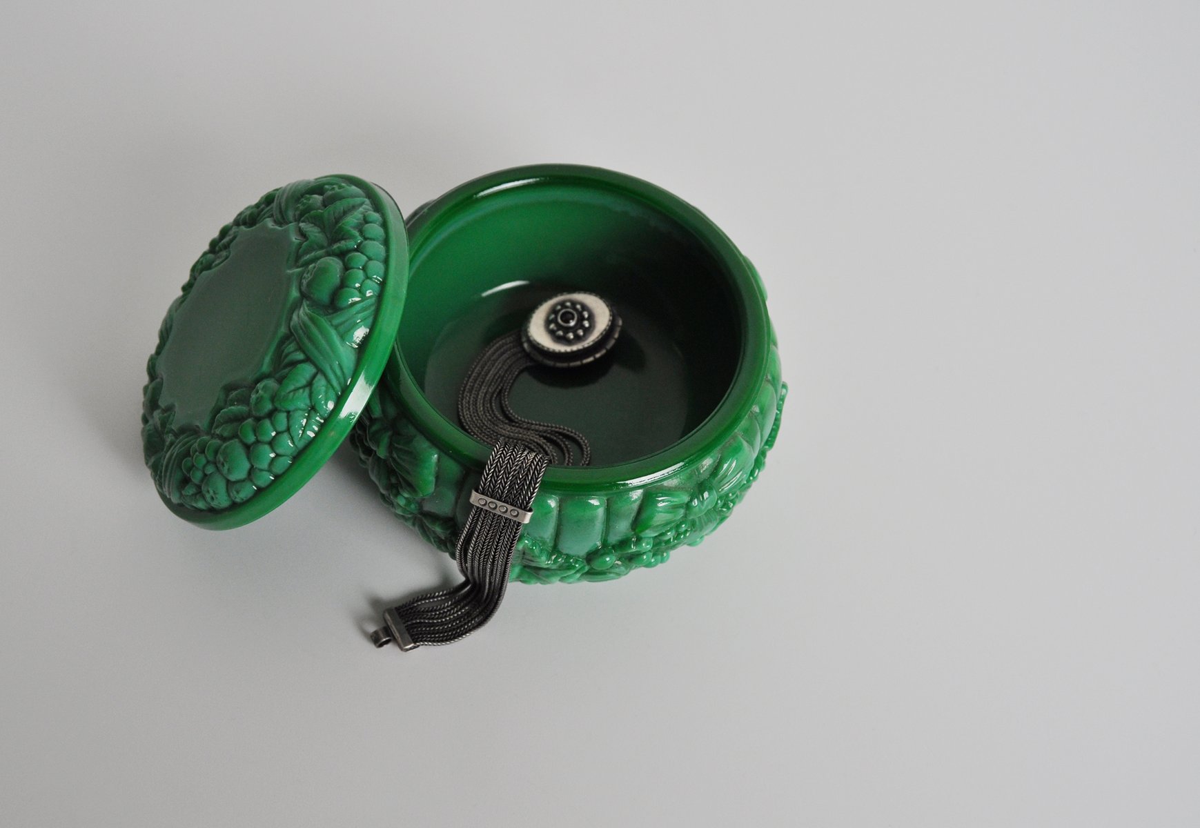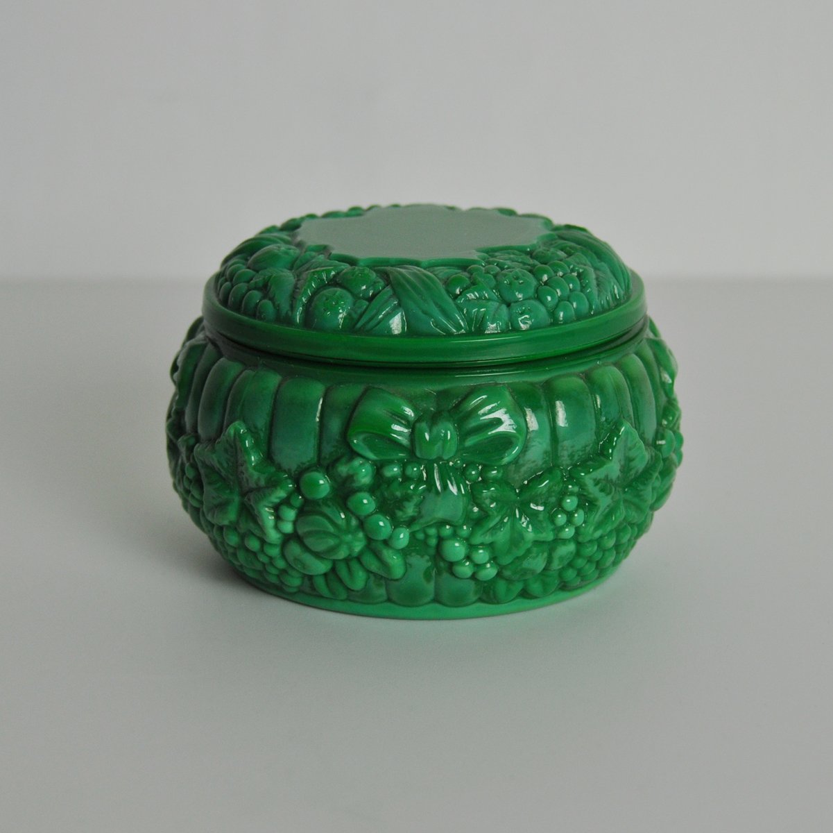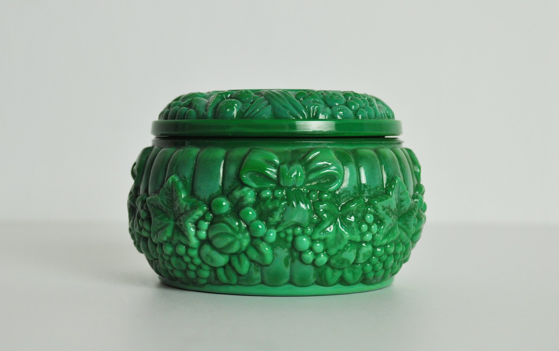 Emerald Green Malachite Glass Trinket Box, 1950s-1960s