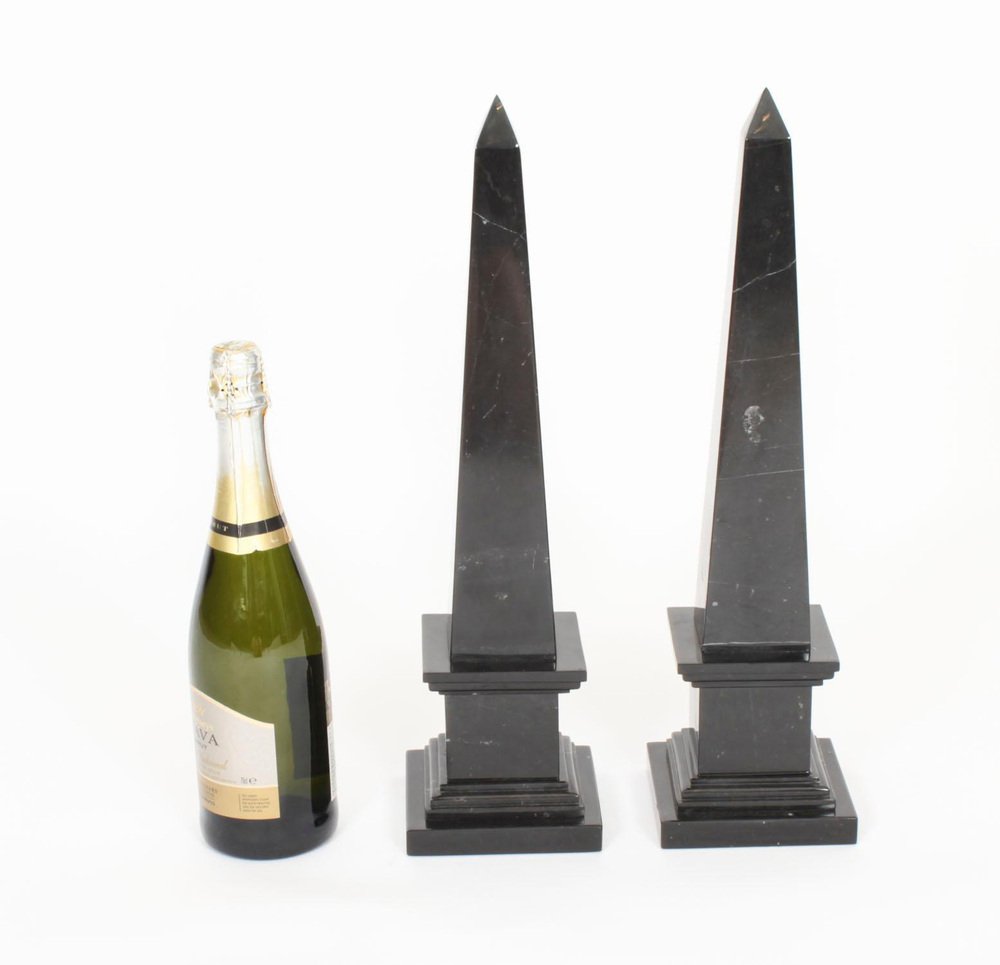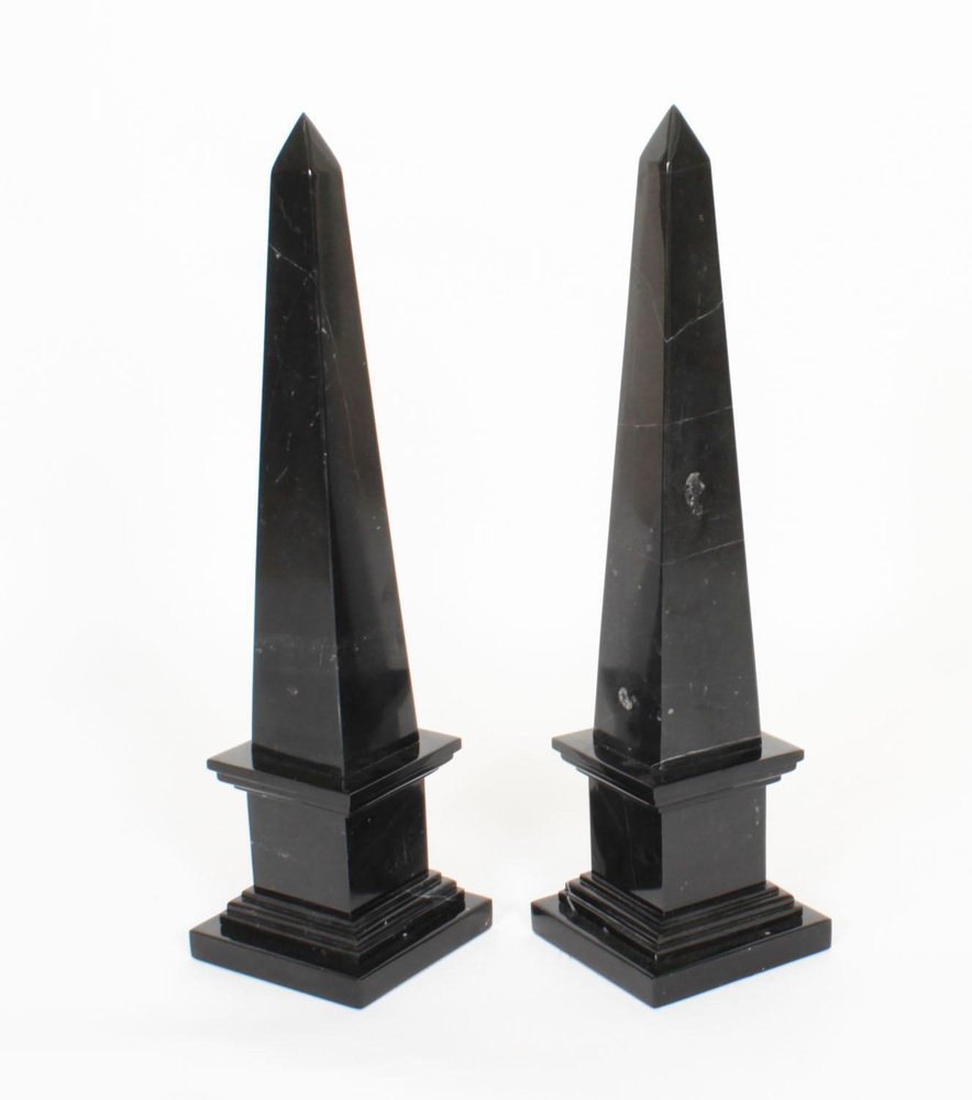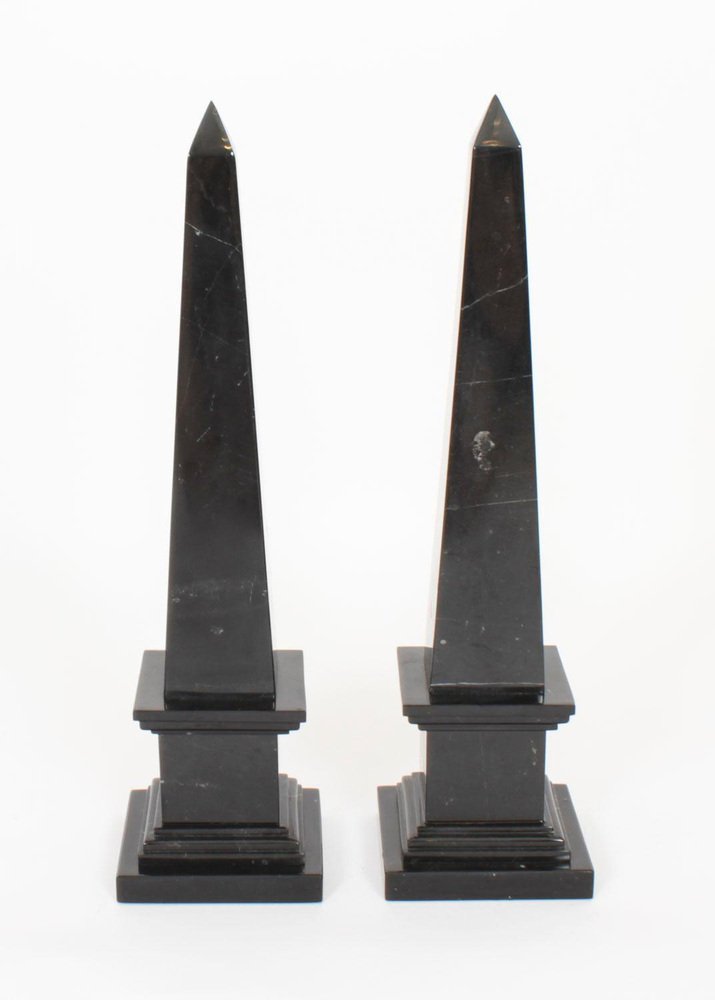 Empire Revival Black Marble Obelisks, 1980s, Set of 2