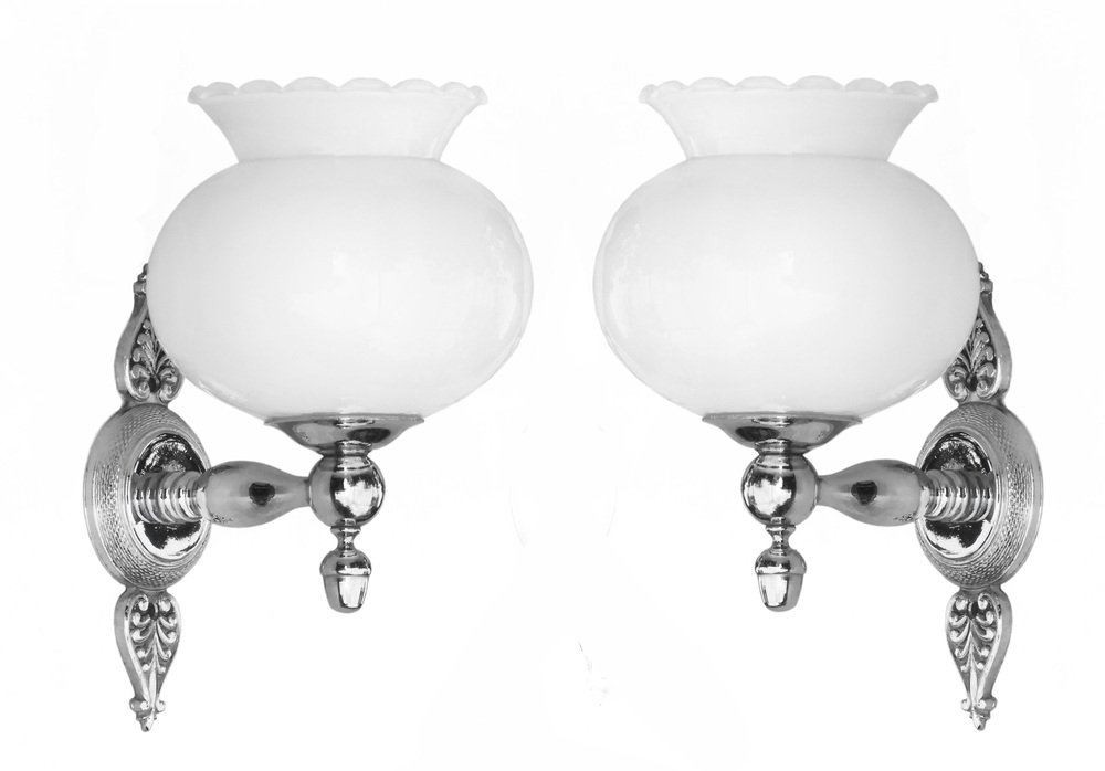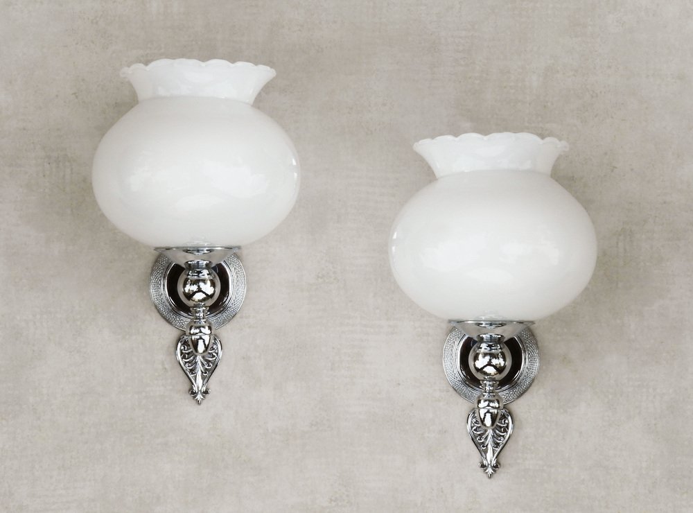 Empire Revival Wall Sconces in Opaline and Chrome, France, 1970, Set of 2
