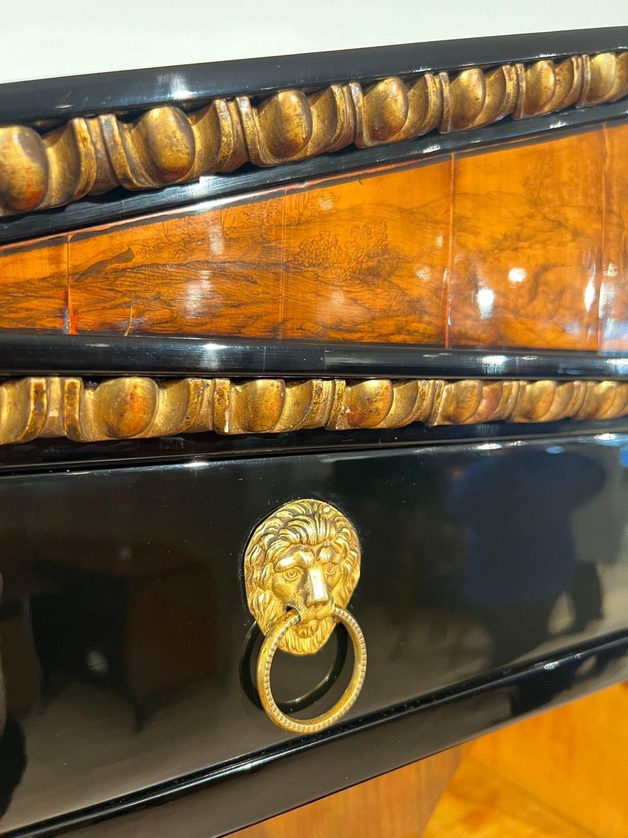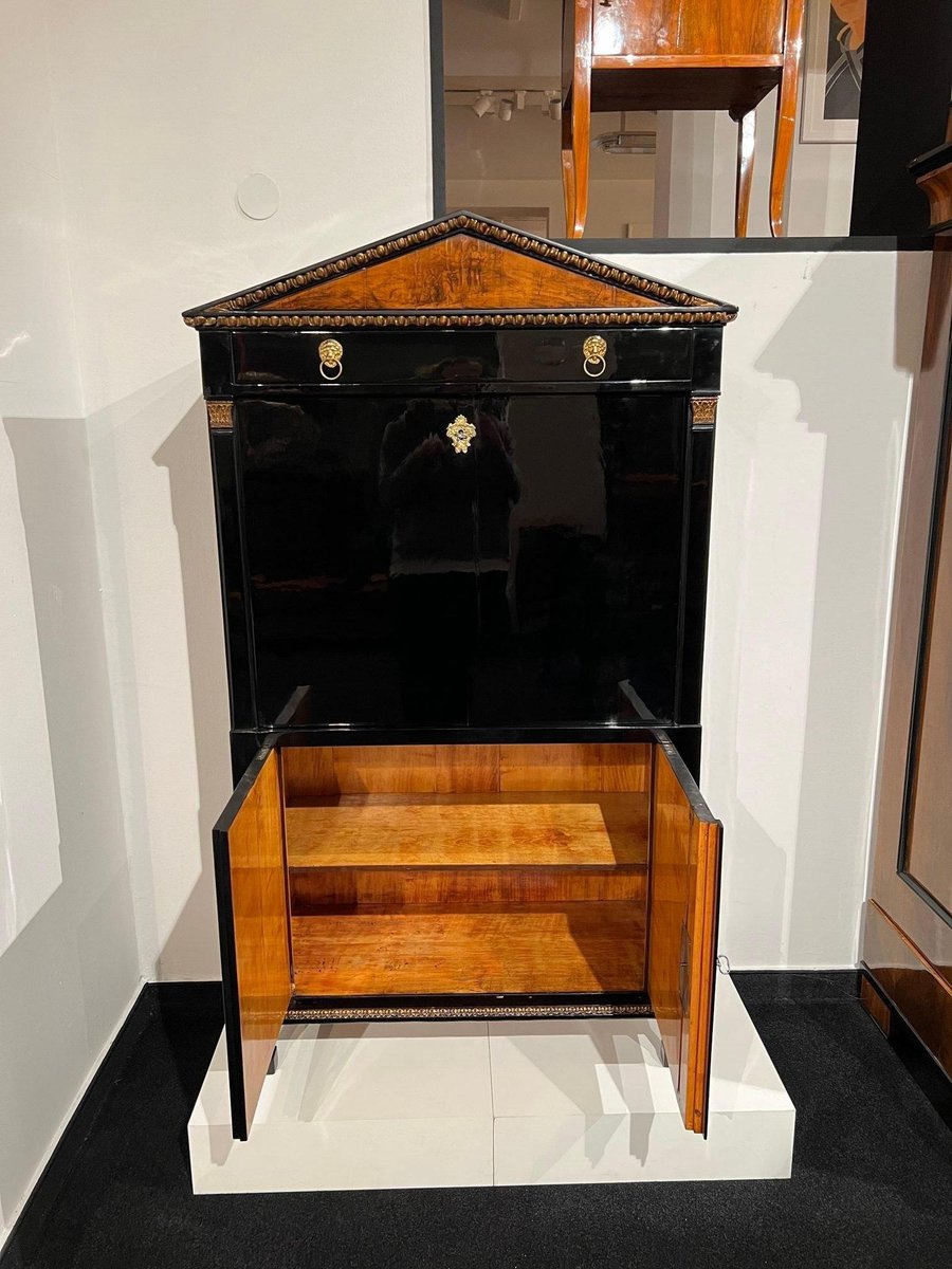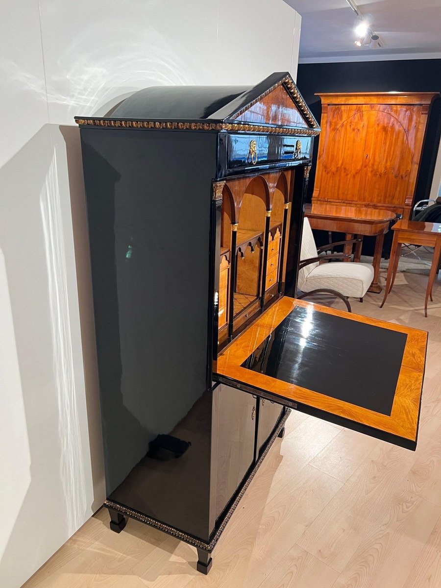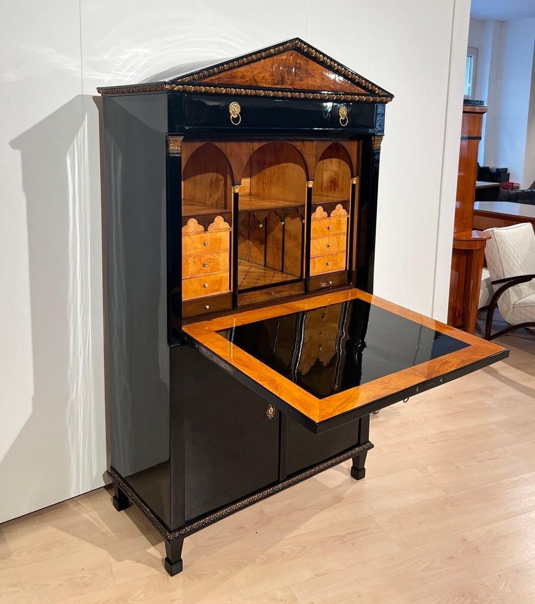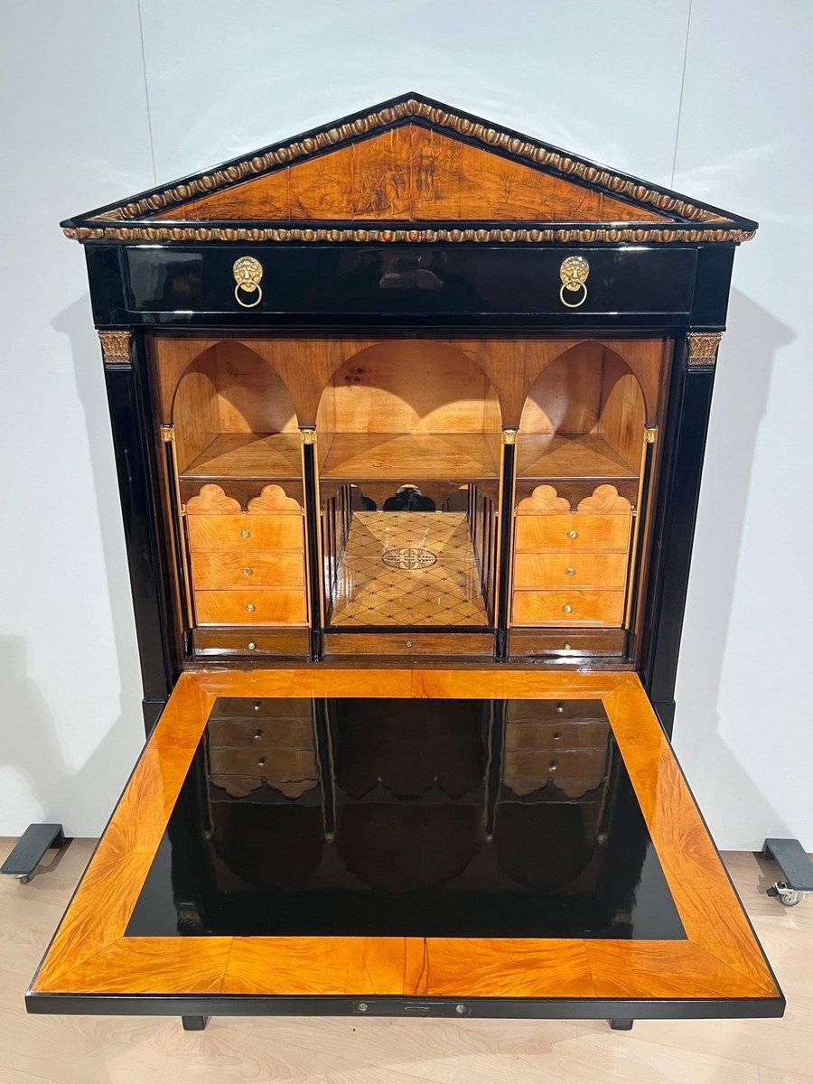 Empire Secretary in Ebonized Wood, Maple & Ink Painting, Vienna, 1815