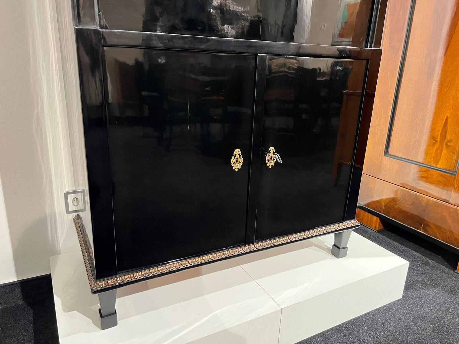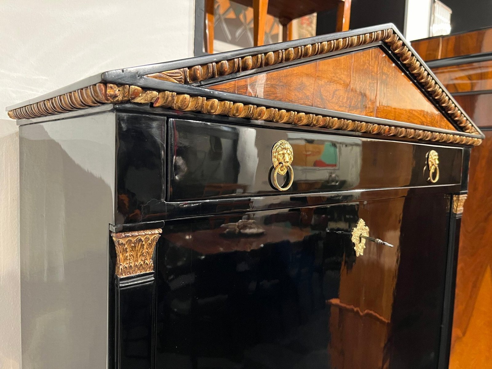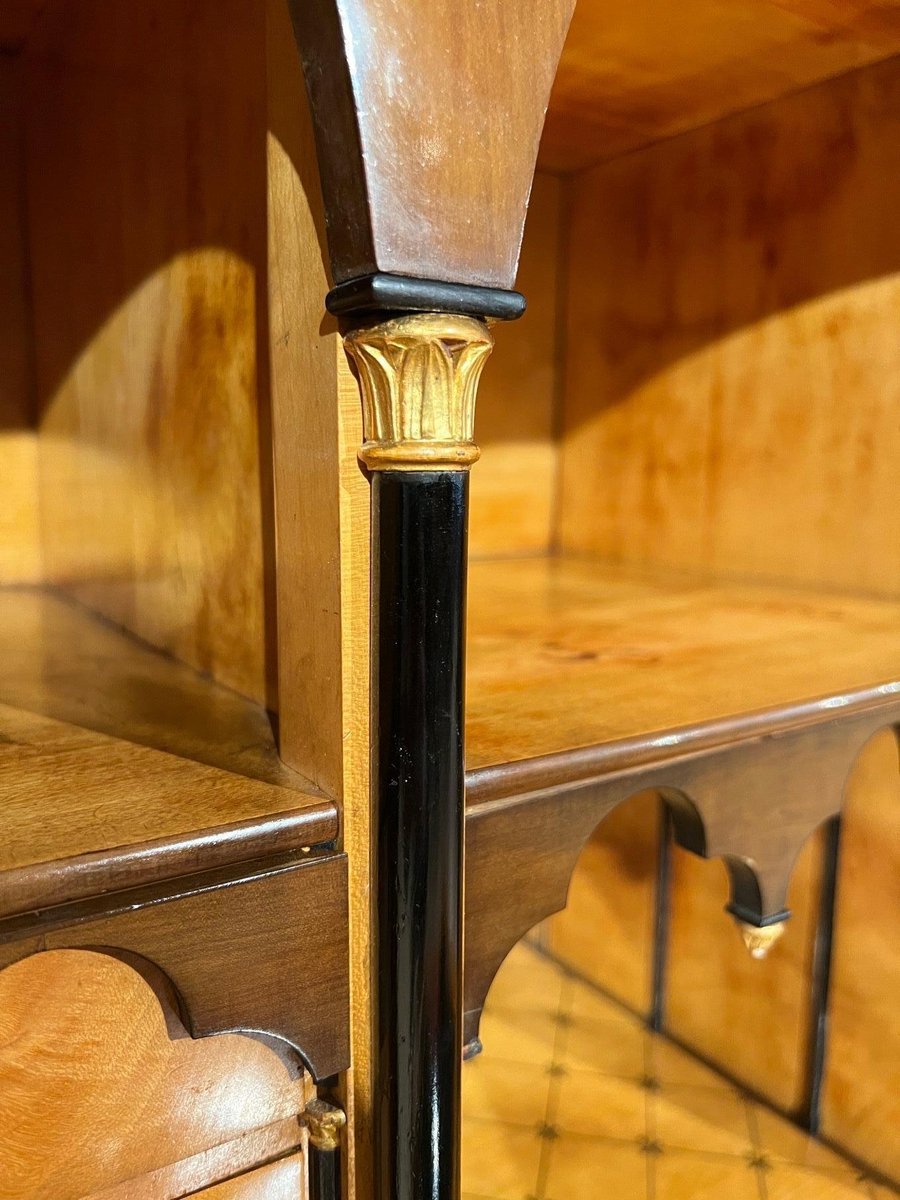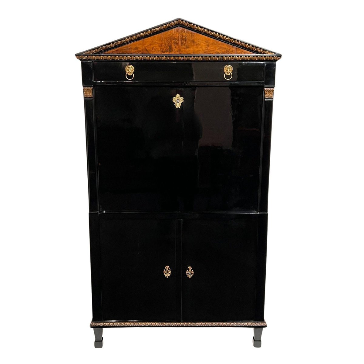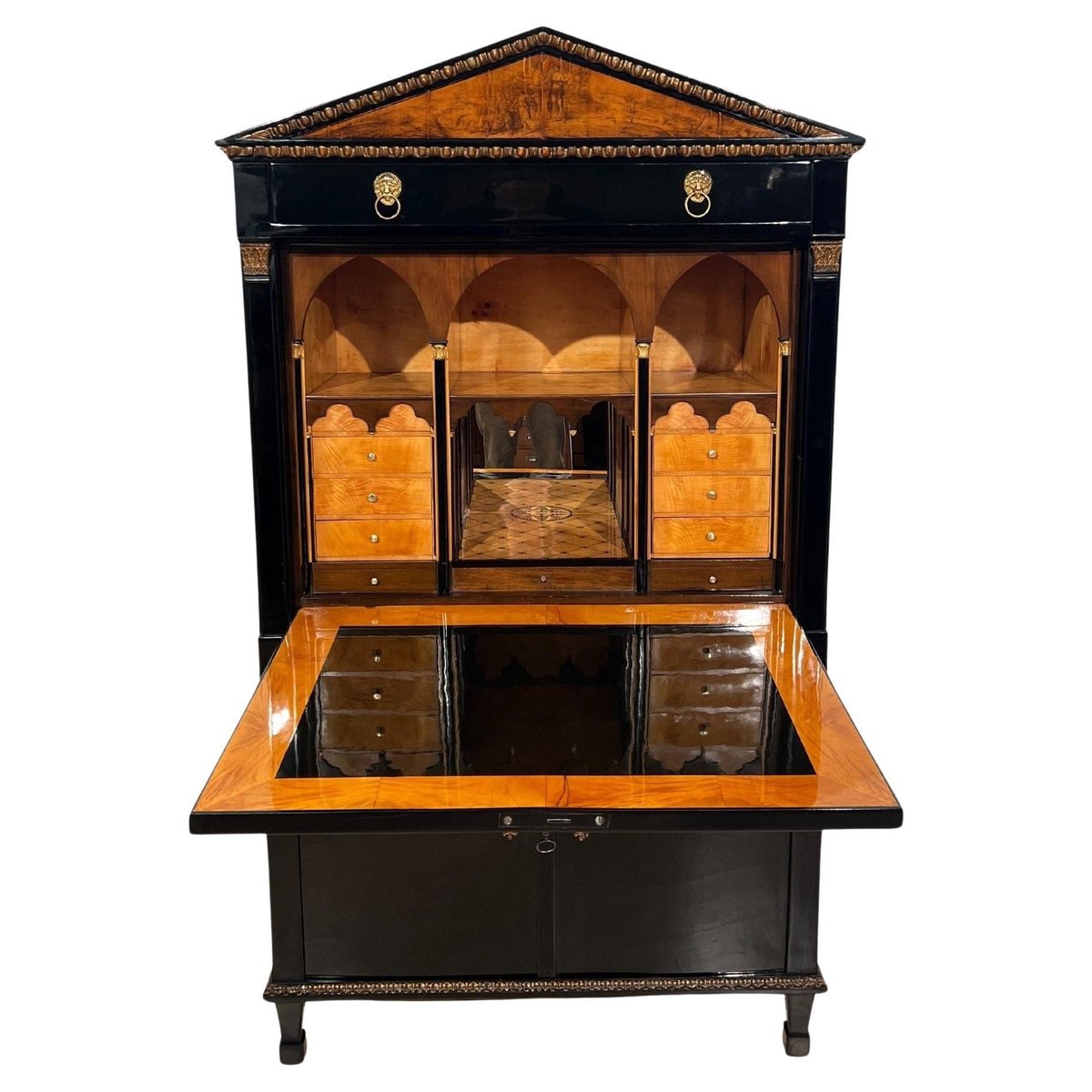 Empire Secretary in Ebonized Wood, Maple & Ink Painting, Vienna, 1815