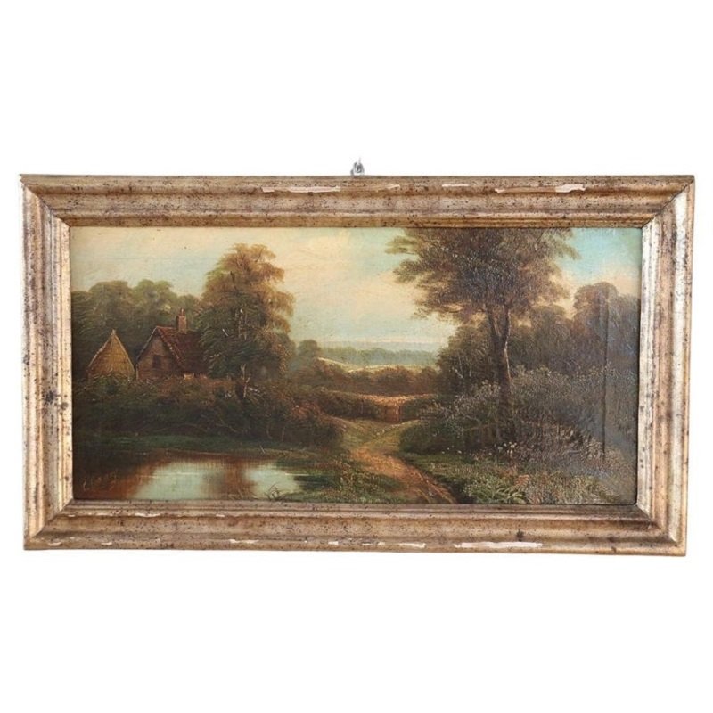 English Landscape, Oil Painting on Canvas, 19th Century, Framed