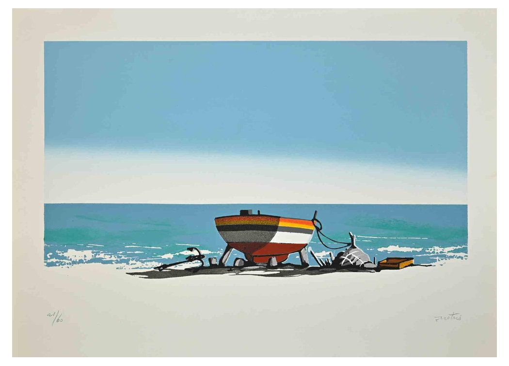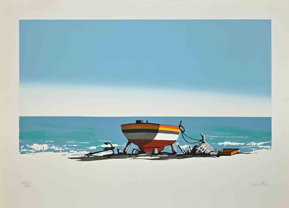 Enotrio Pugliese, Seascape with Boat, Screen Print, 1960s