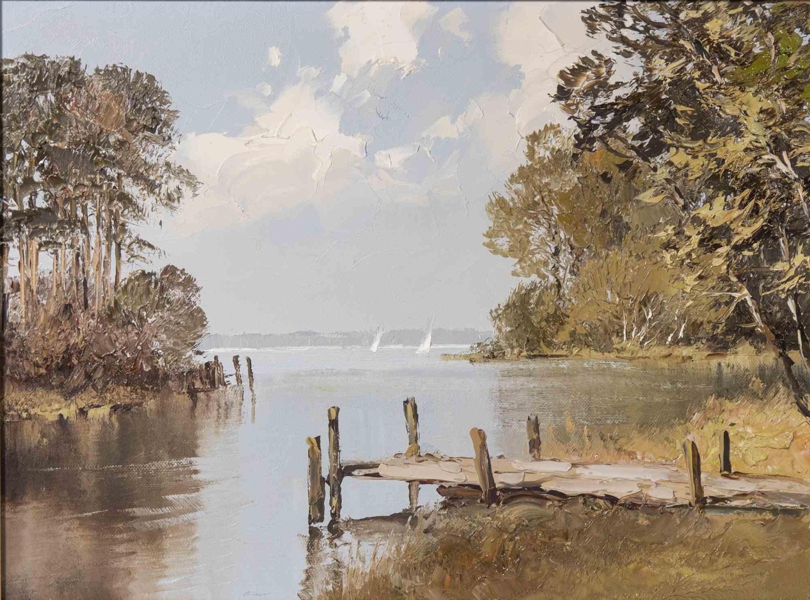 Erich Paulsen, Lakescape, Original Oil Painting, Late 20th Century, Framed