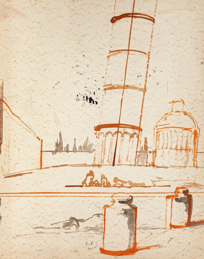 Eugene Berman, Leaning Tower of Pisa, Watercolor on Cardboard, Mid-20th Century