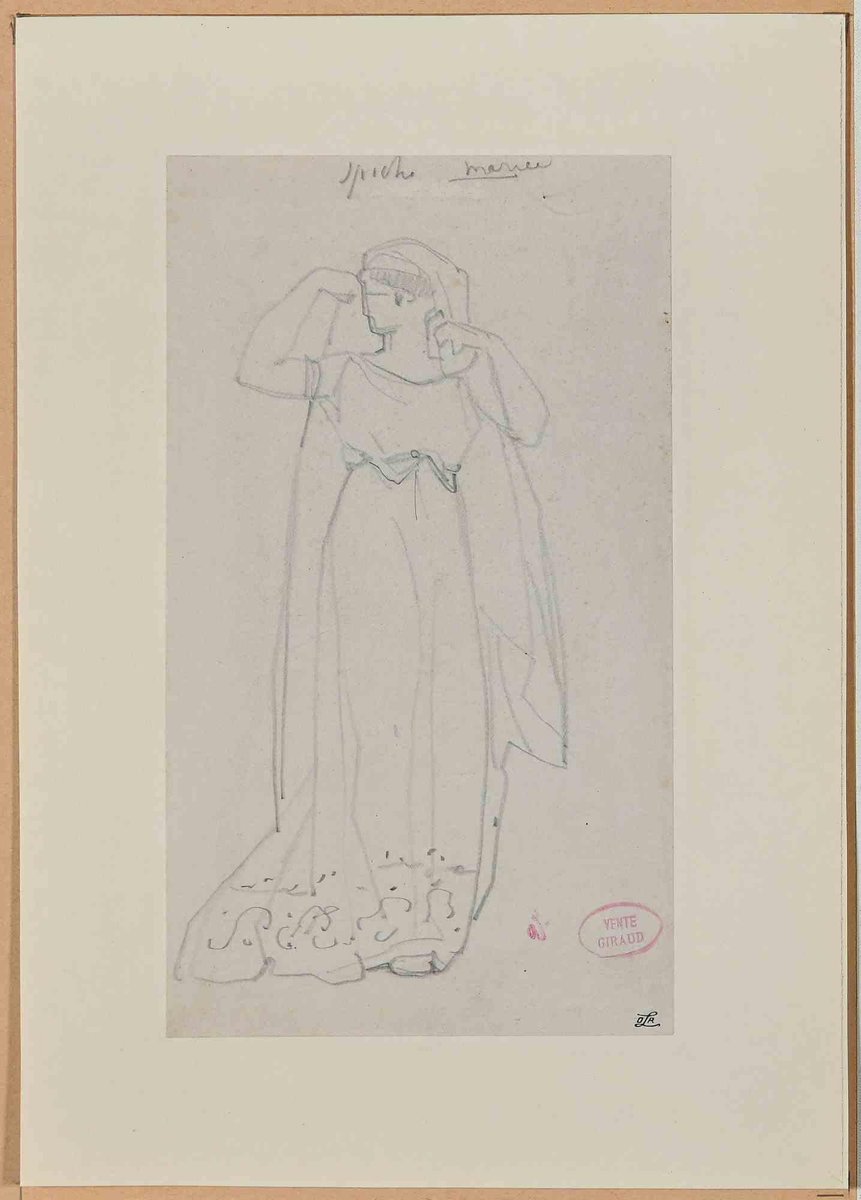 Eugène Giraud, Woman, Original Drawing on Paper, Late 19th-Century