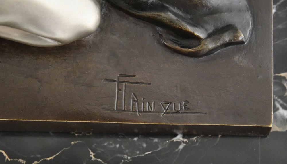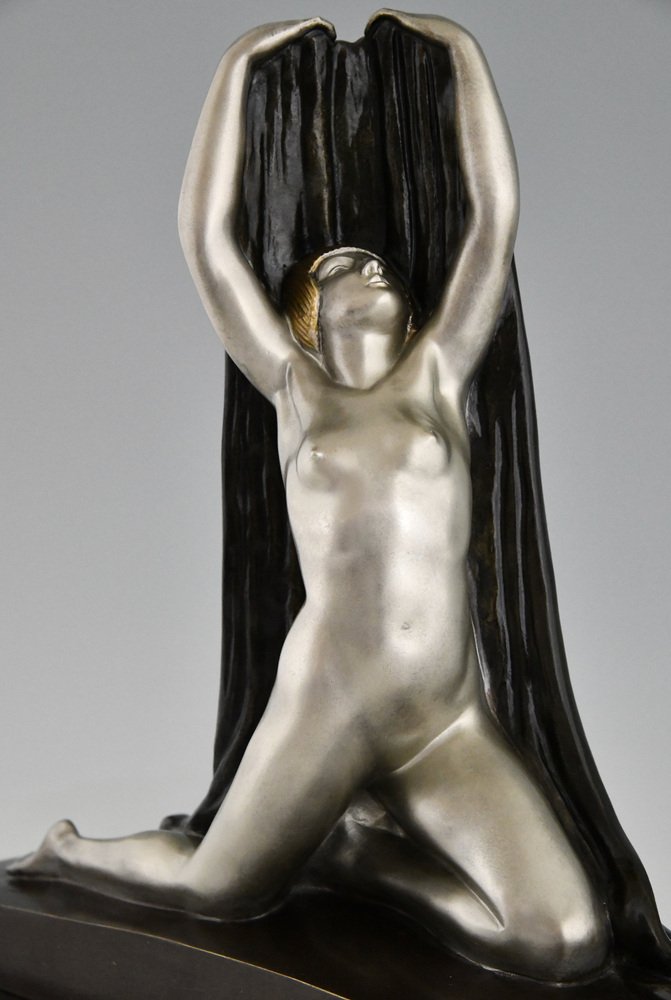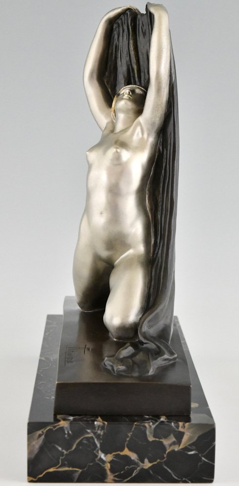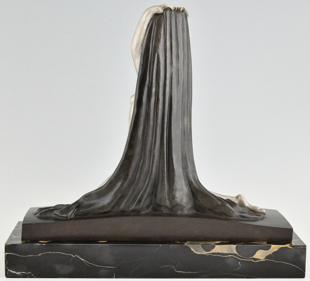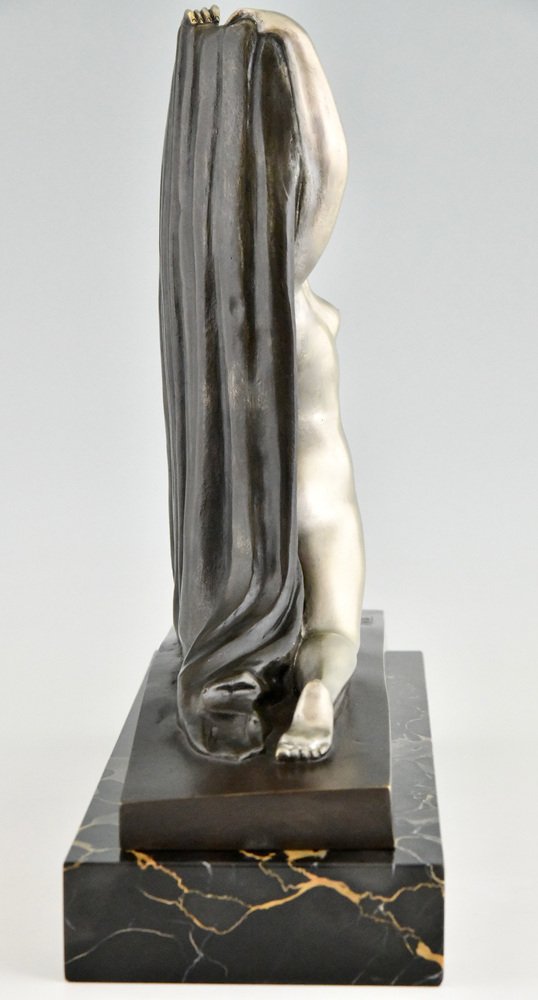 F. Trinque, Art Deco Nude with Drape, 1920s, Bronze & Marble