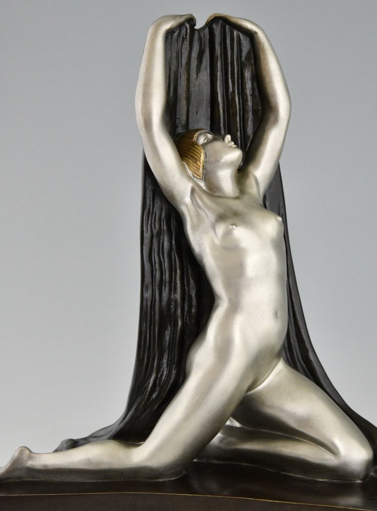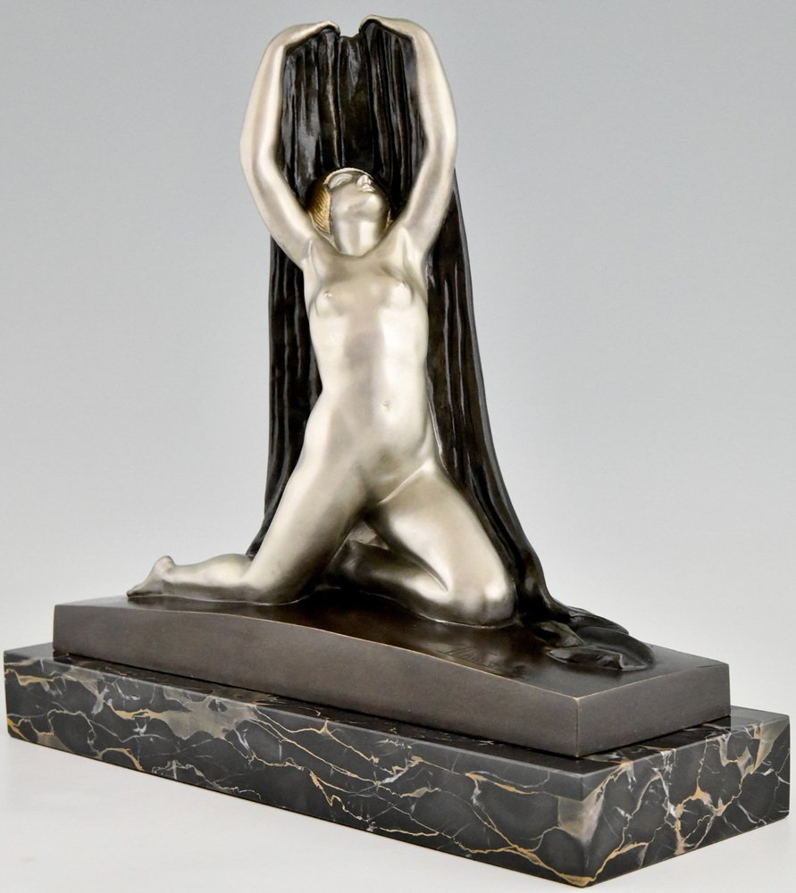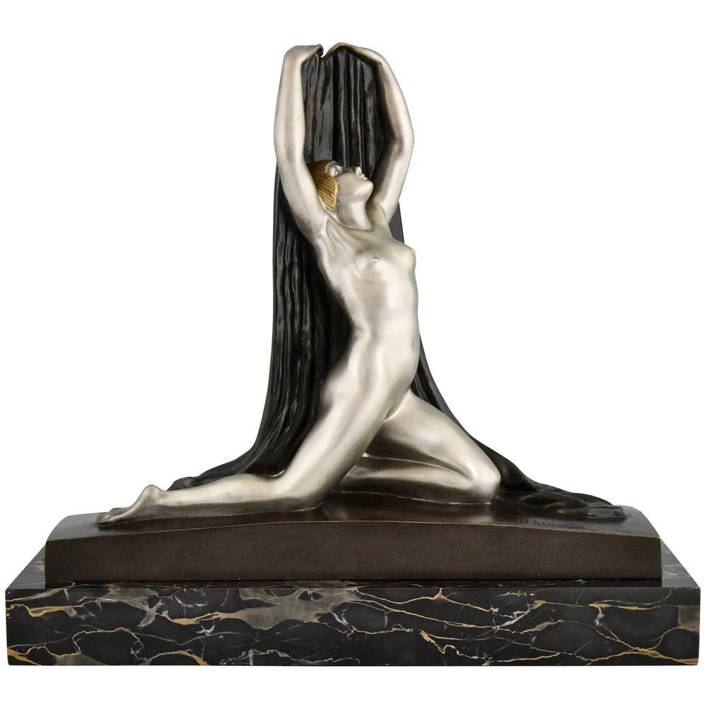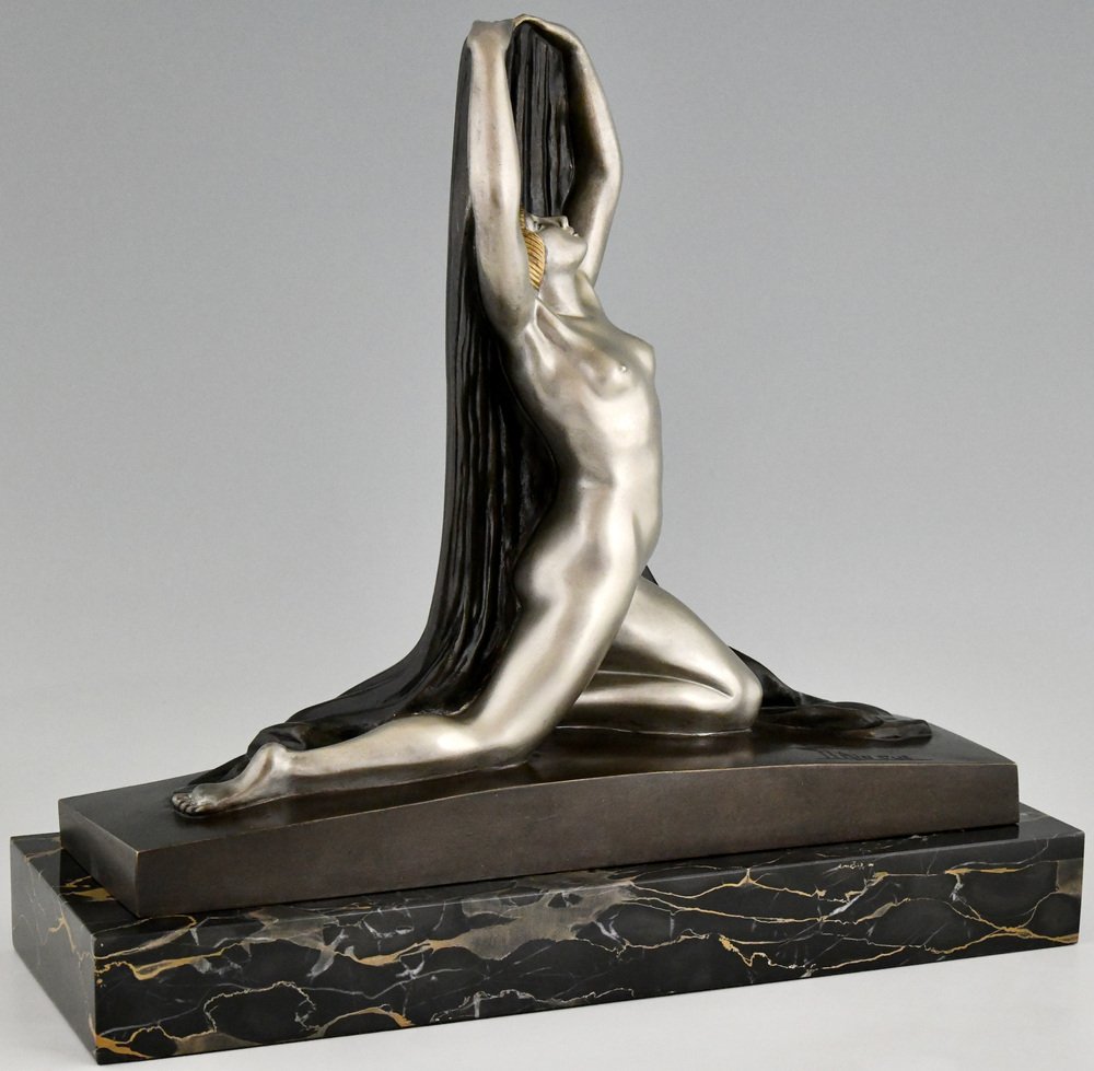 F. Trinque, Art Deco Nude with Drape, 1920s, Bronze & Marble