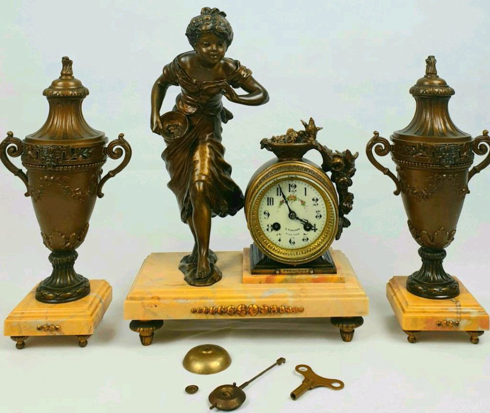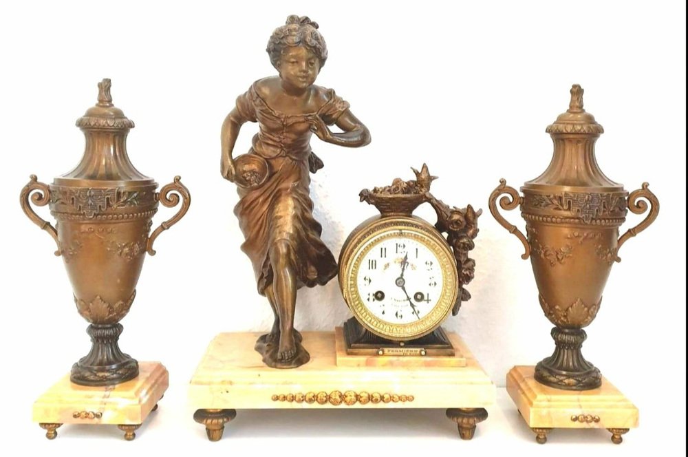 Farmer Clock Set by Moreau, 1850s, Set of 3