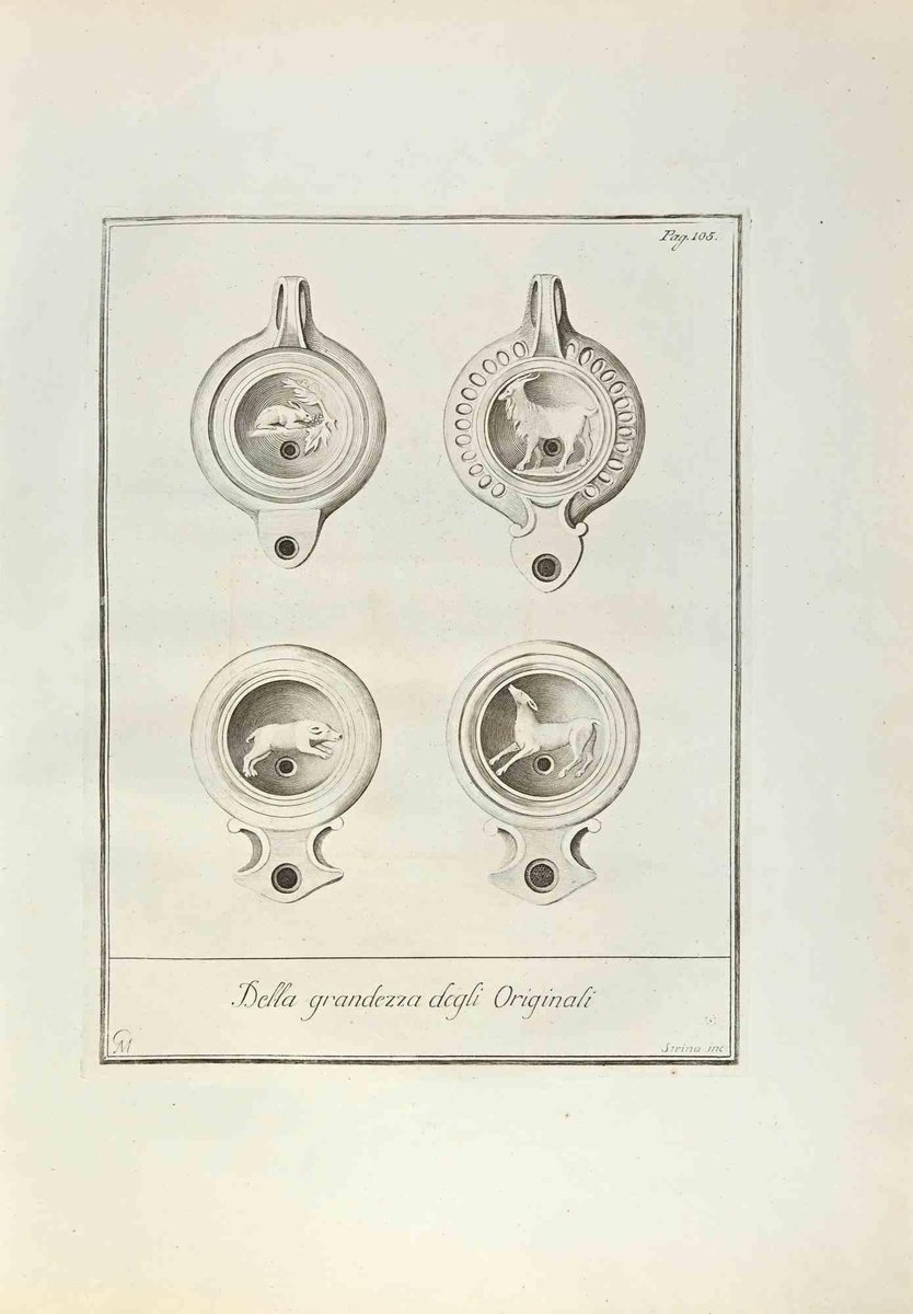 Fernando Strina, Pompeian Style Oil Lamps with Anima, Etching, 18th Century
