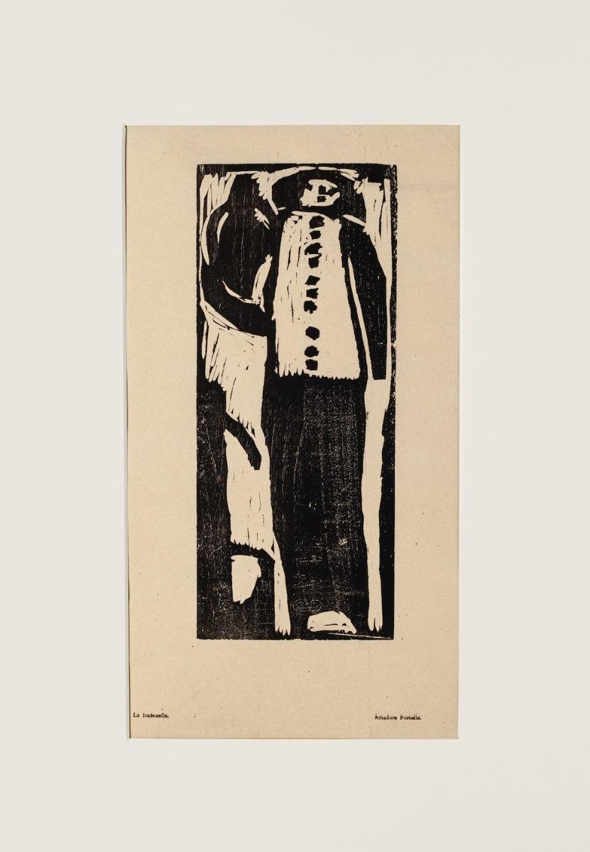 Figure - Original Woodcut Print by Amadore Porcella - Early 20th Century Early 20th Century